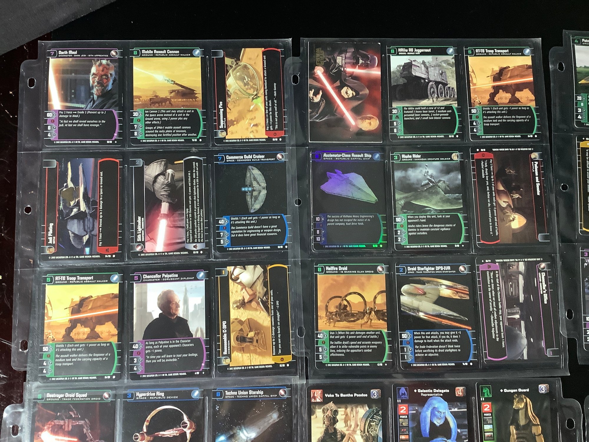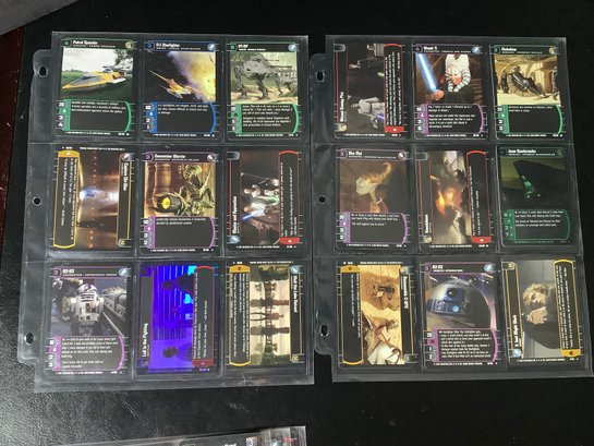 Groups of assorted Star Wars trading cards.