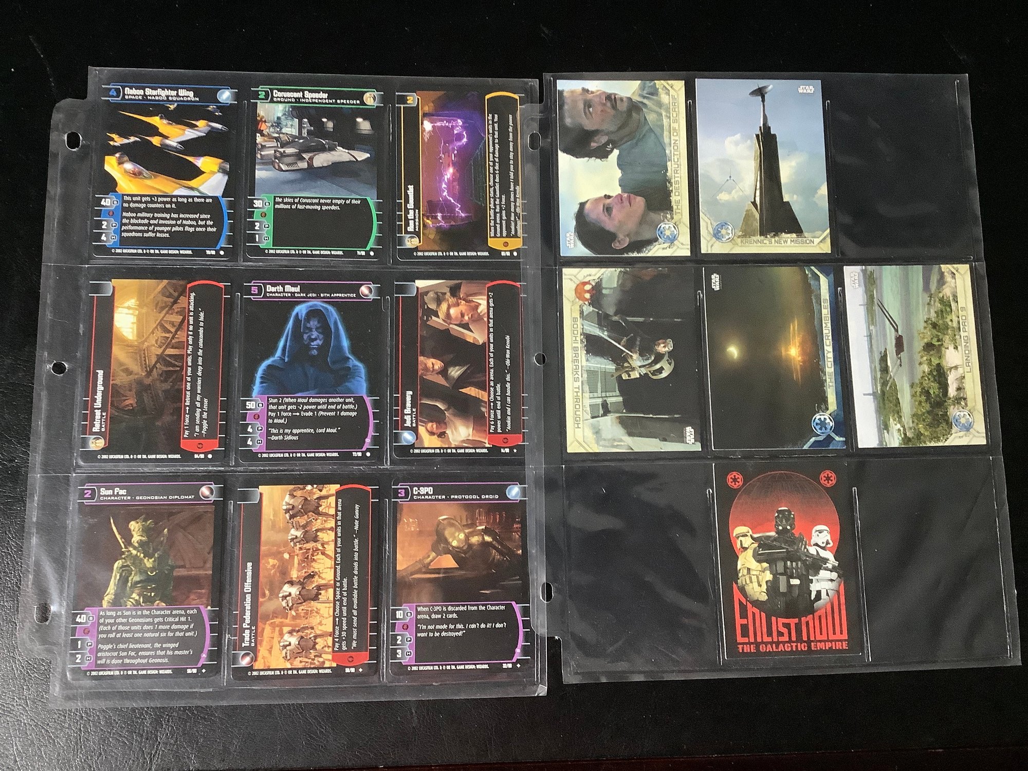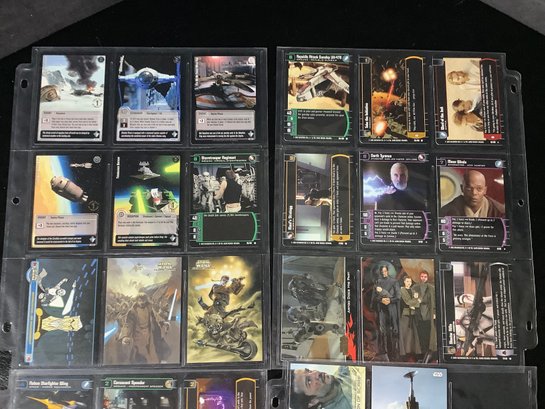 Groups of assorted Star Wars trading cards.