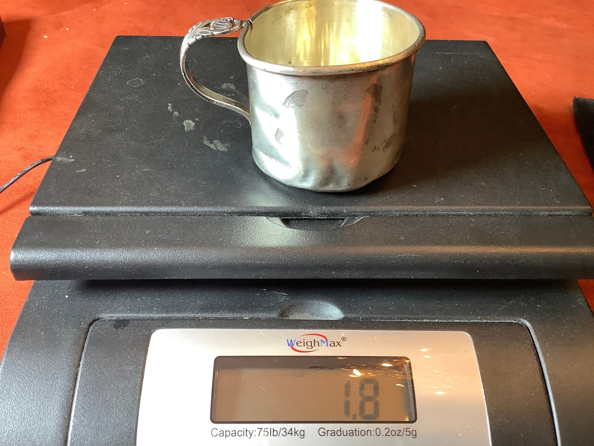 The cup measures approximately 2 1/2” across and weighs