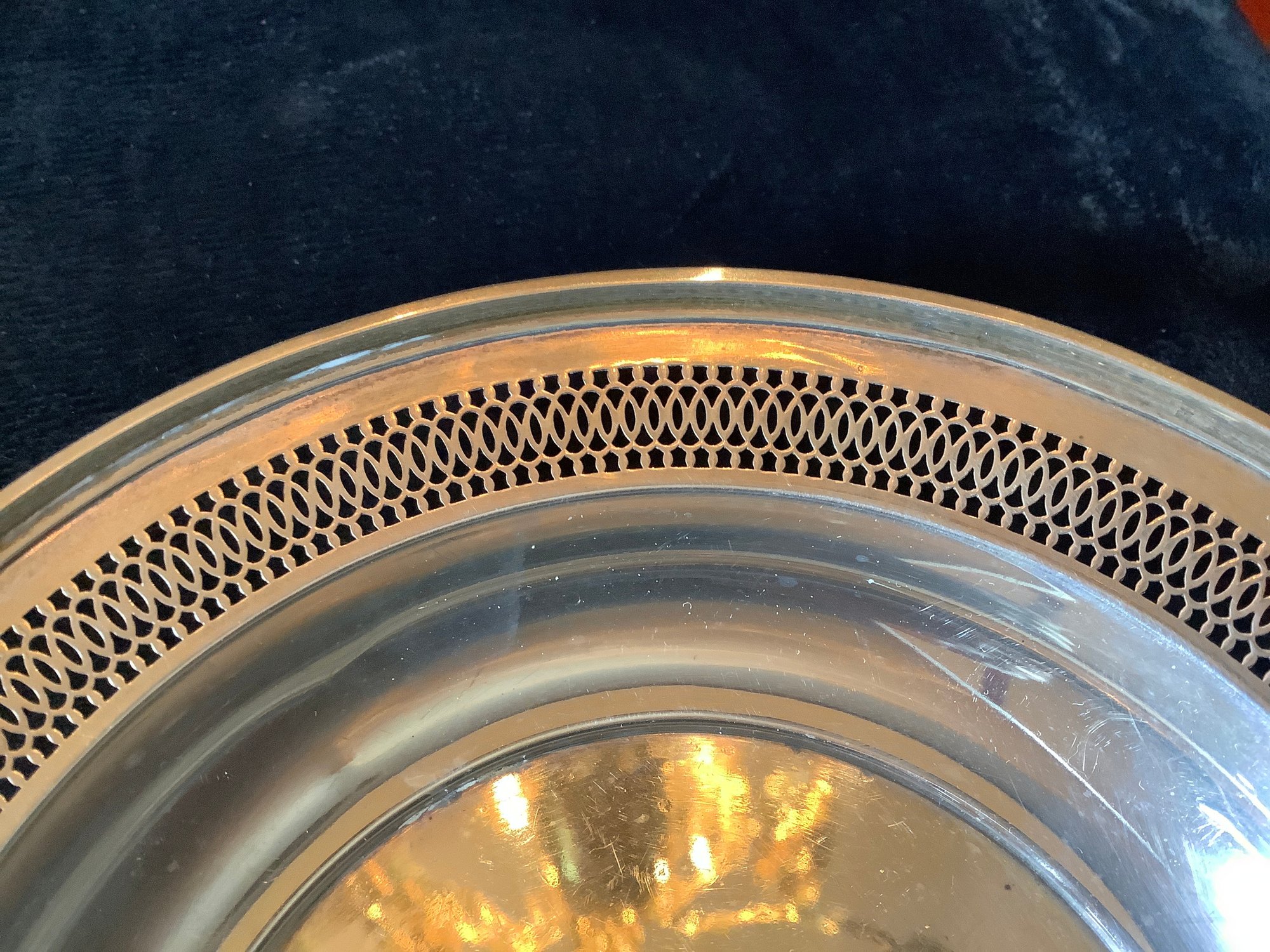 This bowl offers just that with a reticulated wide brim, the bowl measures 5 1/2” across.