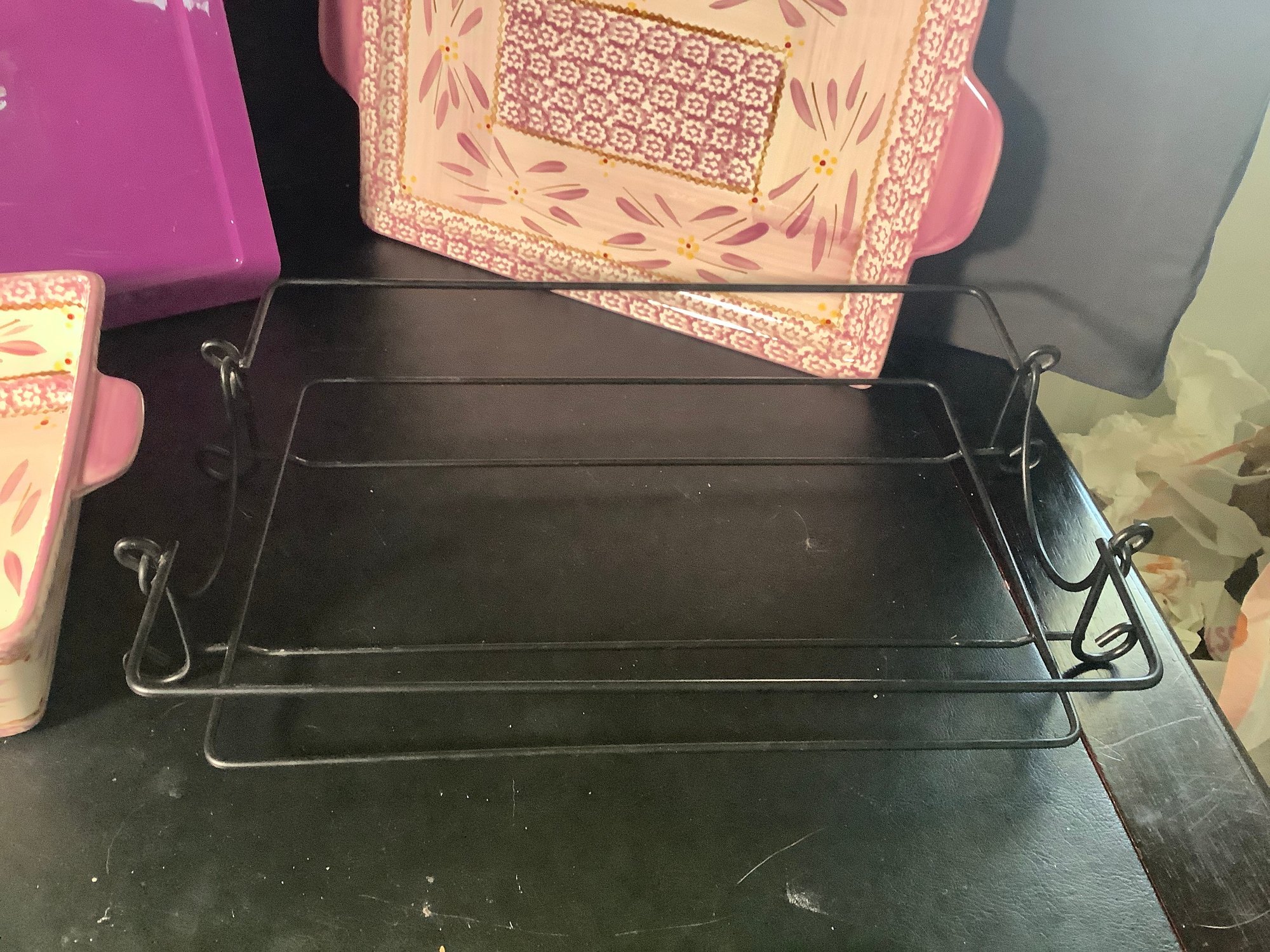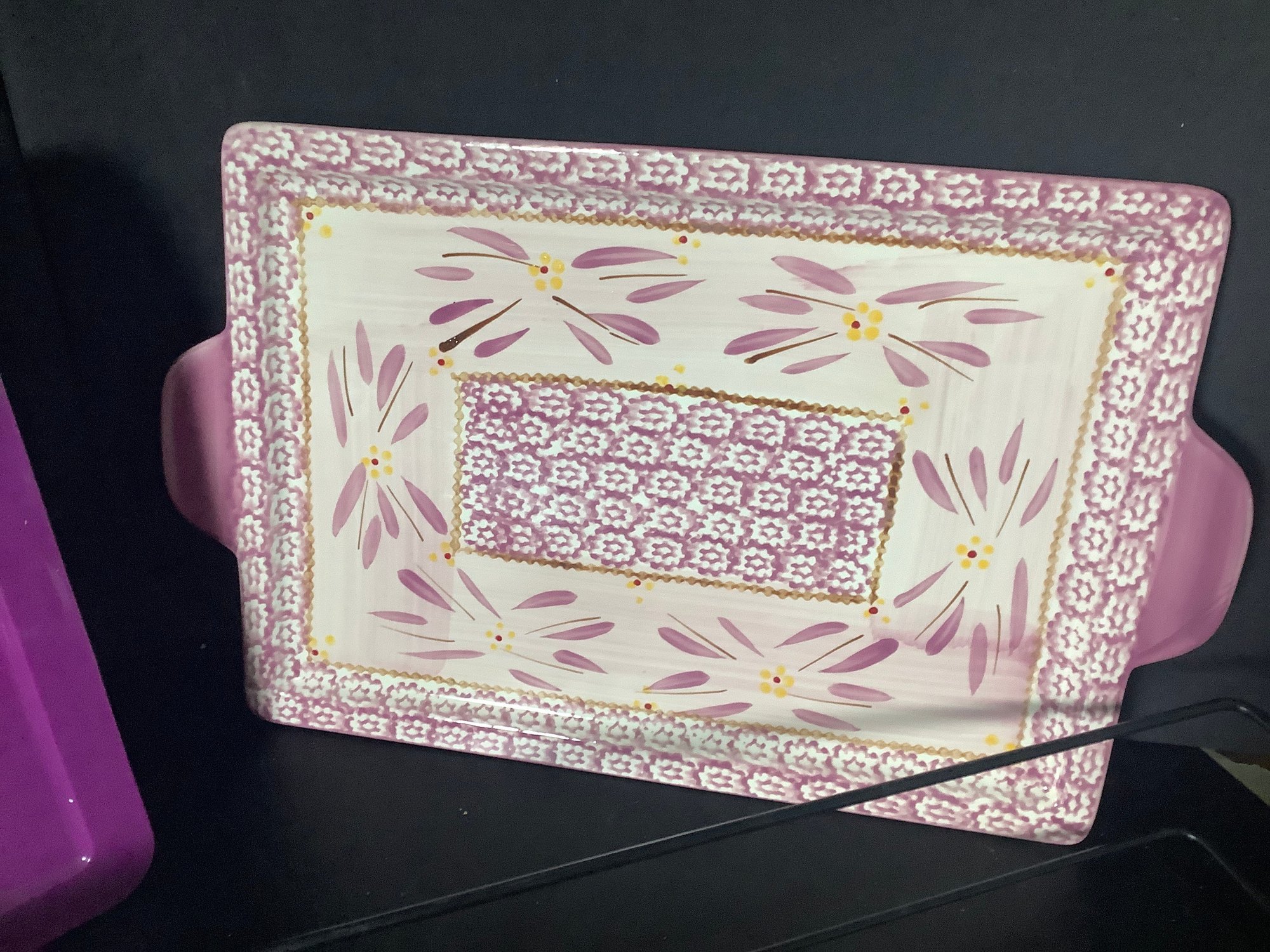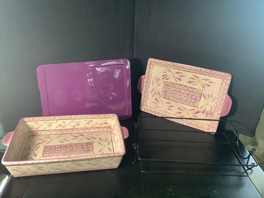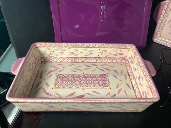 Temp-tations Lilac Old World Baking dish. Comes with wire rack, plastic cover and tray. Size 4 quarts, approximately 13” x 9” . Preowned, but looks like it was never used . Photos are part of the description. NO SHIPPING!!!