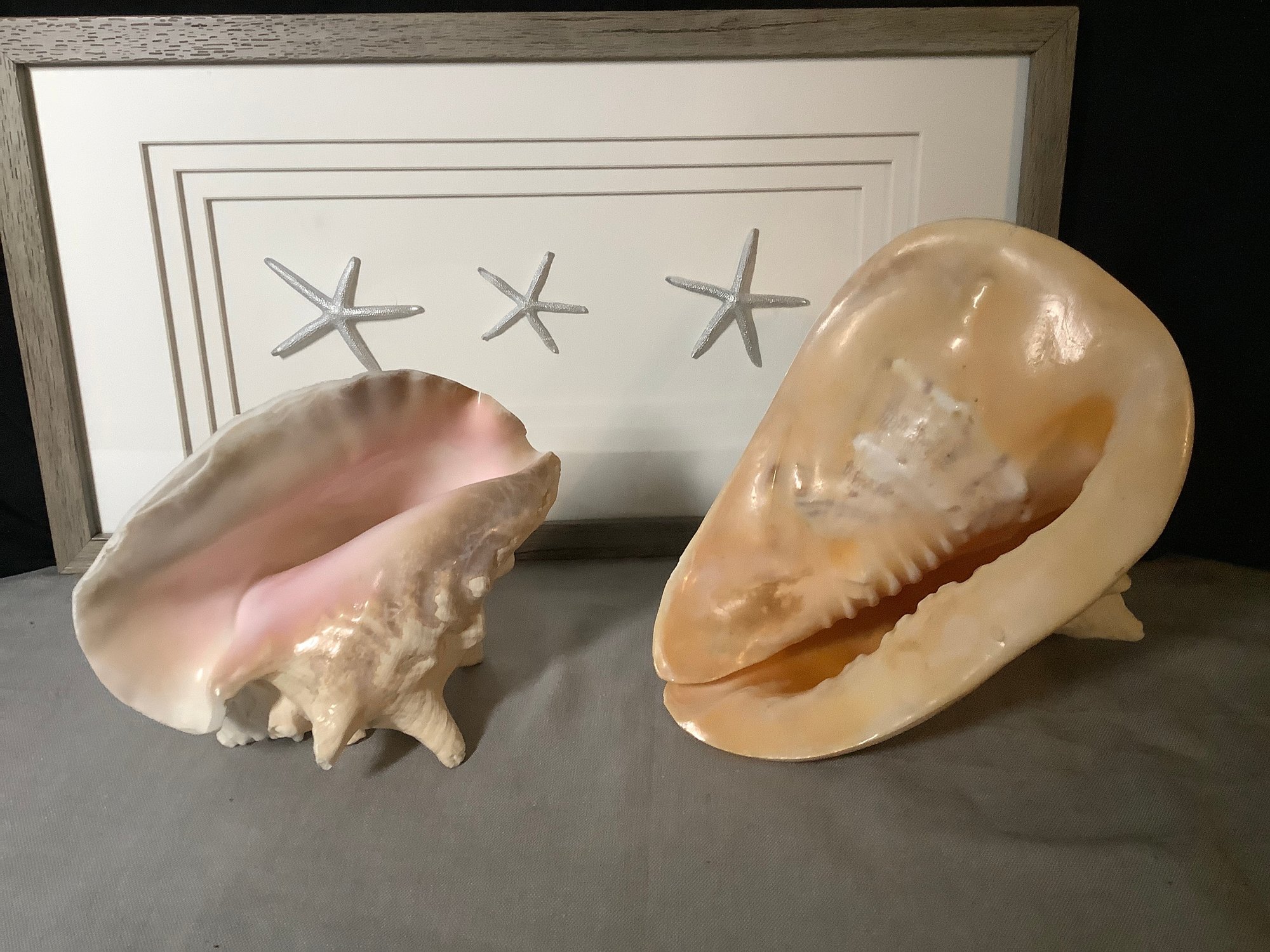 Additionally, we have added 2 very large conch type shells. Check out the photos of the shells. The largest one has a large growth on the bottom that can be visibly seen. Very Cool.