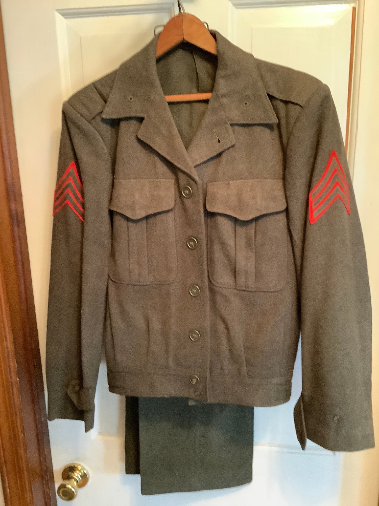 Vintage Military jacket and pants. Jacket measures 17” armpit to armpit. The pants are 32” waist x inseam 31”. Preowned. Photos are part of the description .