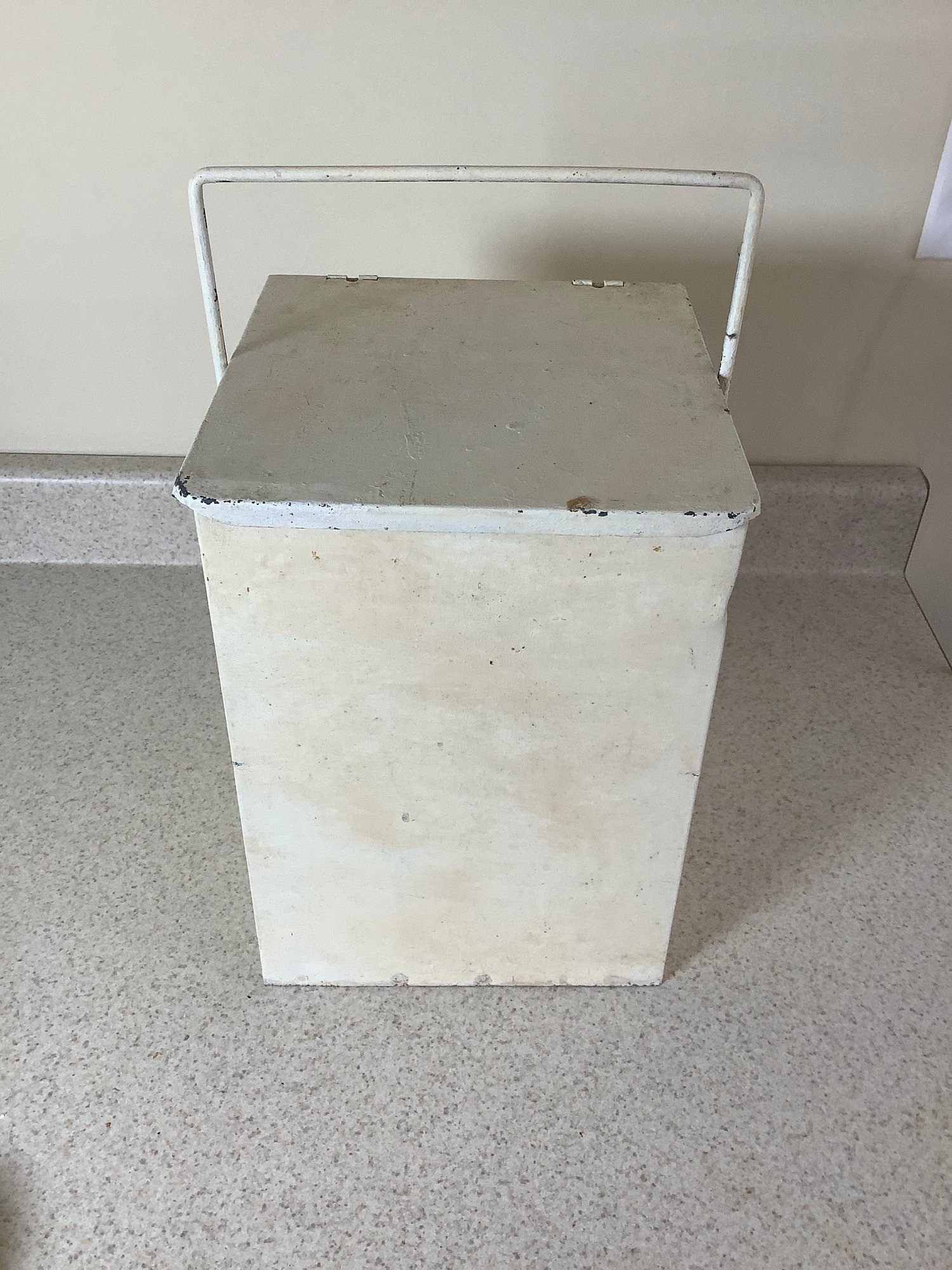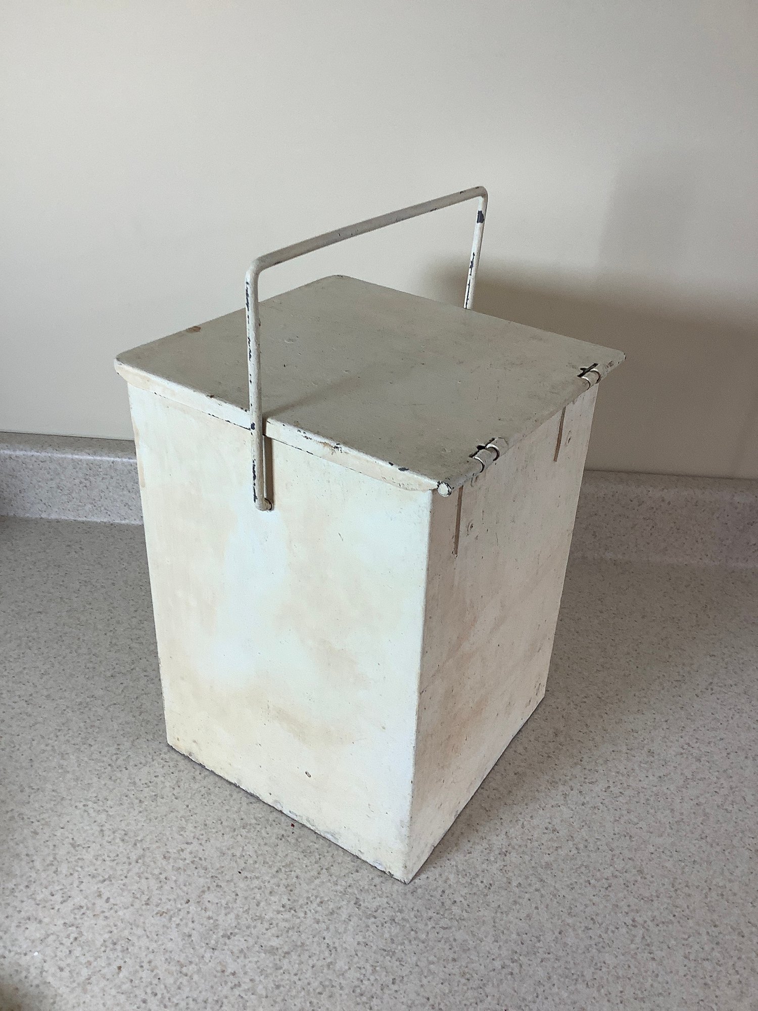 Vintage milk delivery box with handle. Size 8” x 9” x 11-1/2” tall. Photos are part of the description. Preowned. NO SHIPPING!