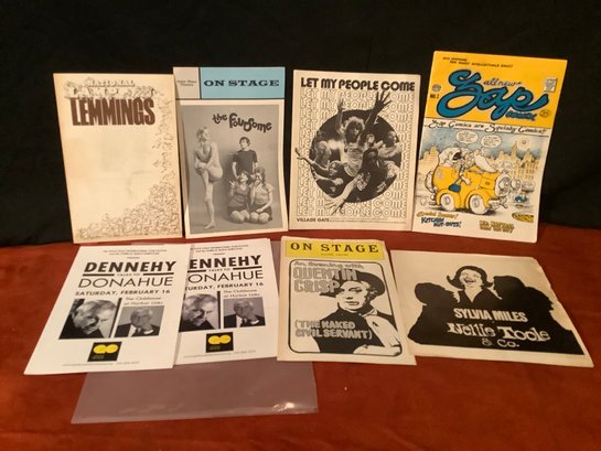 Vintage show programs. Includes National Lampoon Lemmings, The foursome, An Evening with Quentin Crisp and more. Preowned. Photos are part of the description.