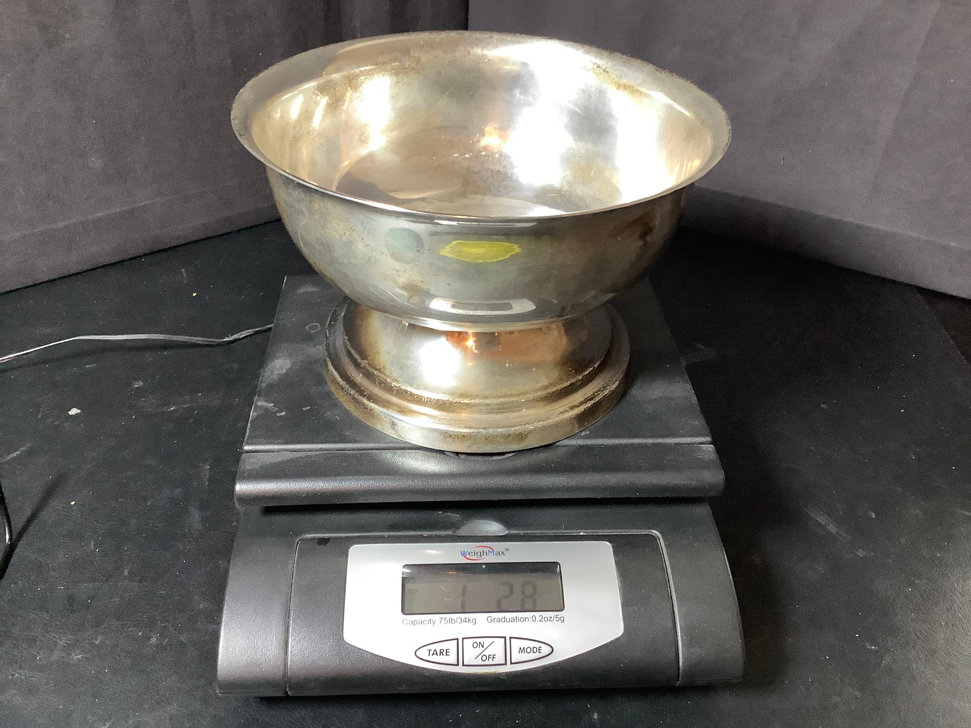 Vintage Sterling silver footed bowl. Weight approximately 1 pound - 2.8 ounce . Size 8” x 8” x 4-3/4” tall. Marked sterling, 925. Photos are part of the description. Preowned.