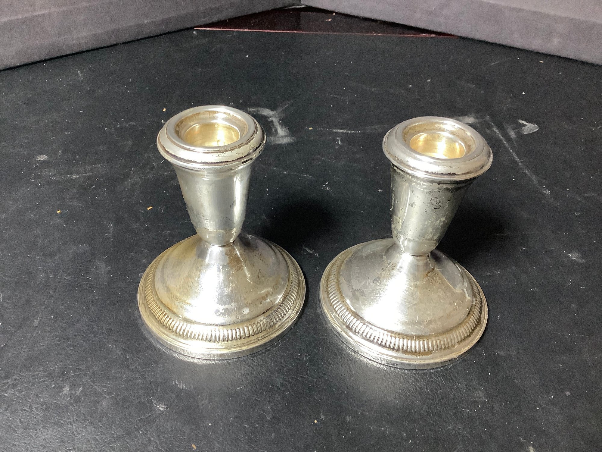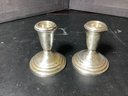 Vintage weighted sterling silver Candle Holders. They stand about 4” tall. Photos are part of the description . Preowned