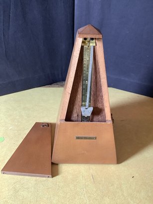 Vintage Seth Thomas wood metronome. Does work when wound up. Photos are part of the description. Preowned.
