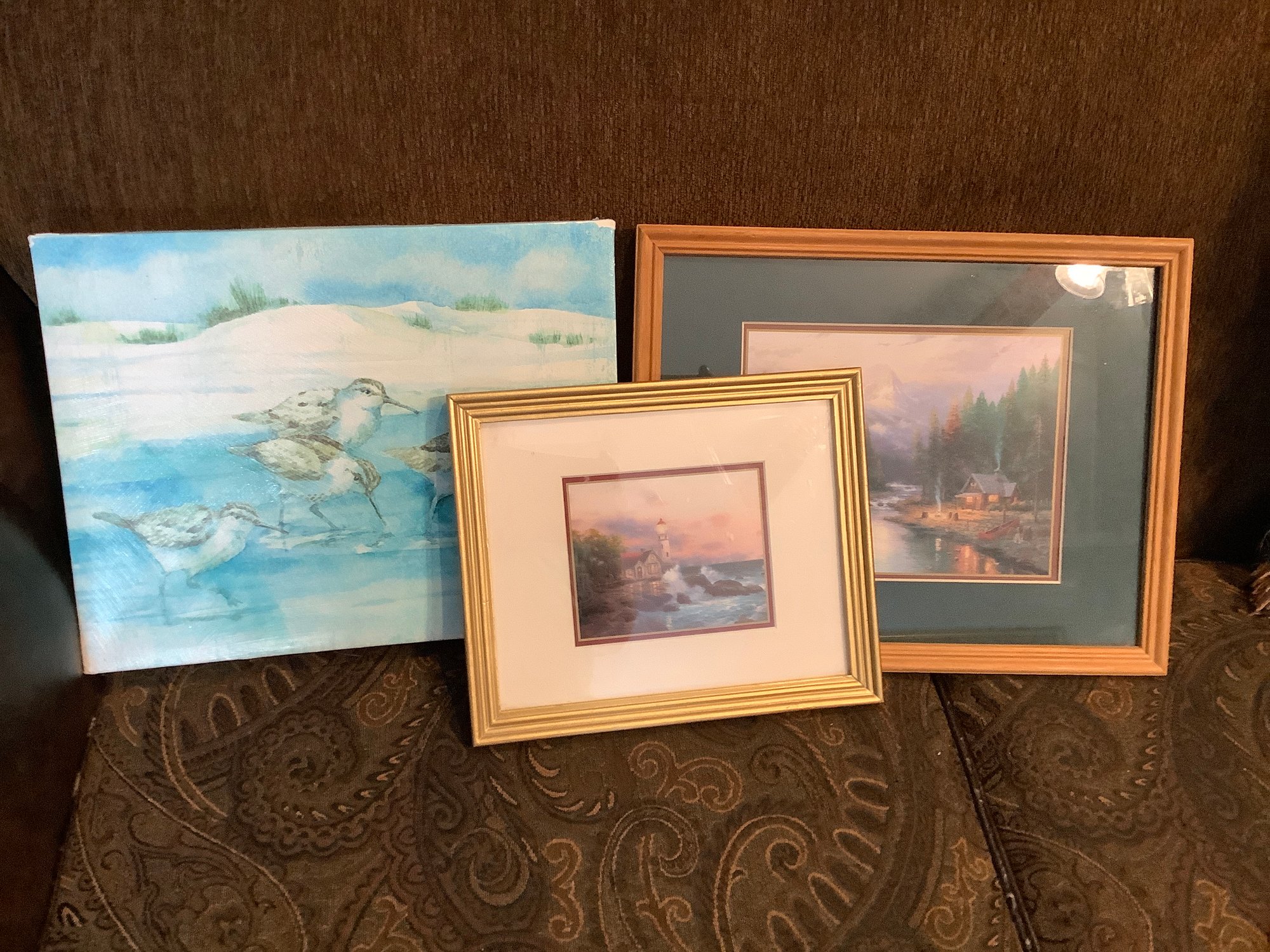 3 pieces of wall art.. Largest size 15” X 12”. Photos are part of the description. Pre-owned. No shipping.