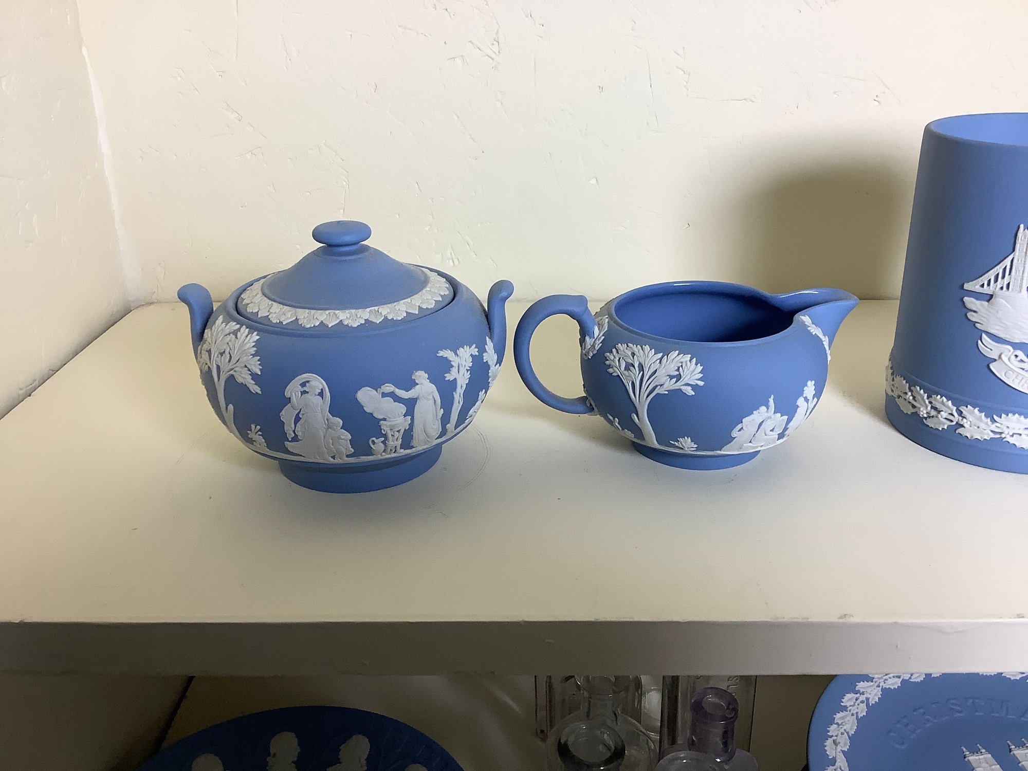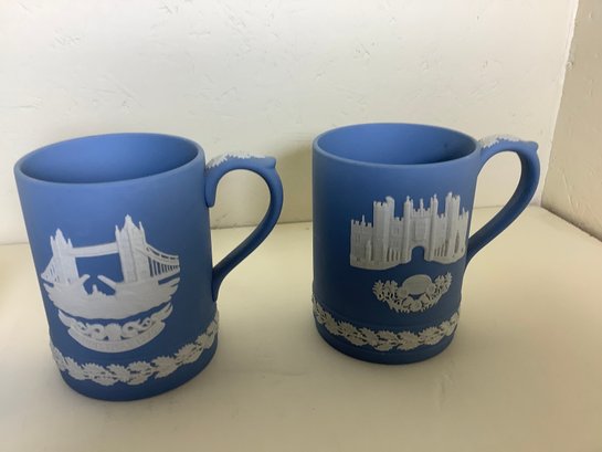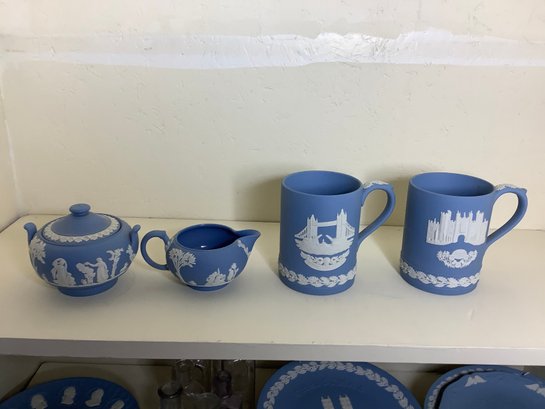 Wedgwood Mugs and Sugar and Creamer. Mugs are 4-1/2” tall. Photos of part of the description. Preowned. No shipping!