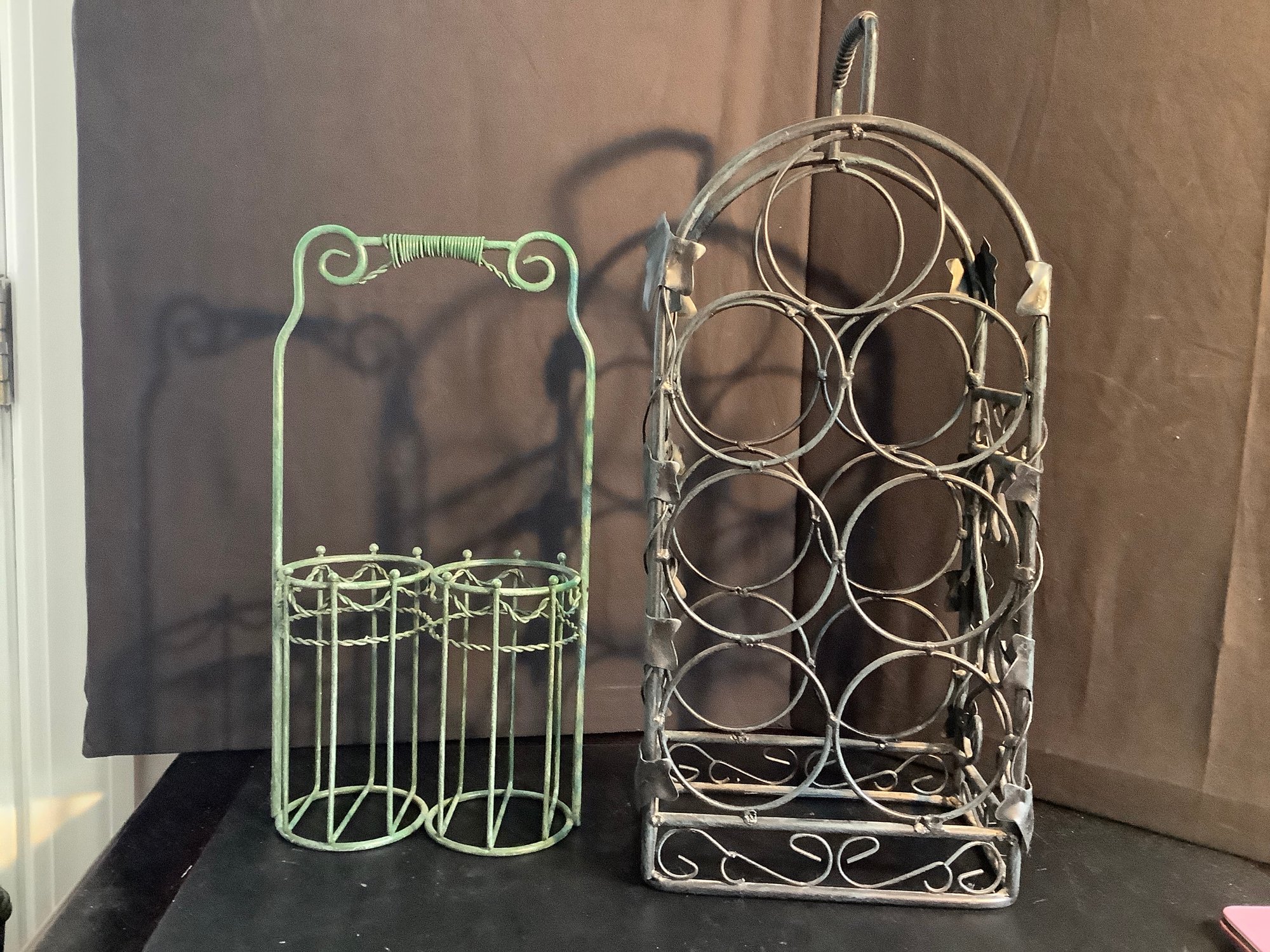 Nice Metal Wine rack holds 14 bottles of wine.