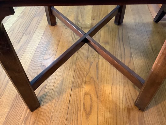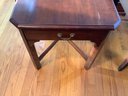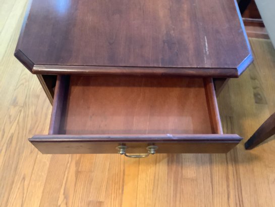 A wood end table with draw. Size 21” x 27” x 22”.
