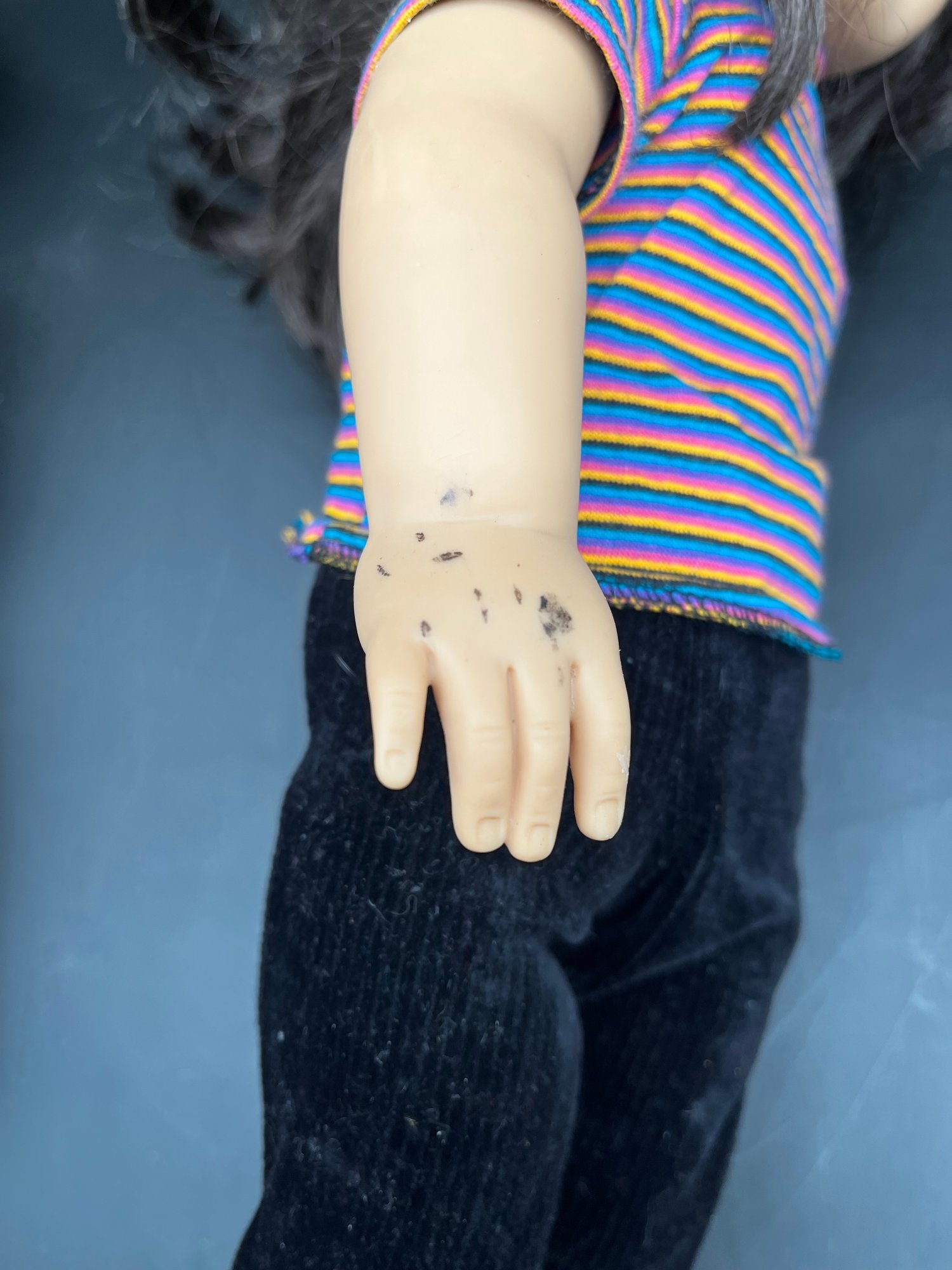 Black substance on other dolls hand