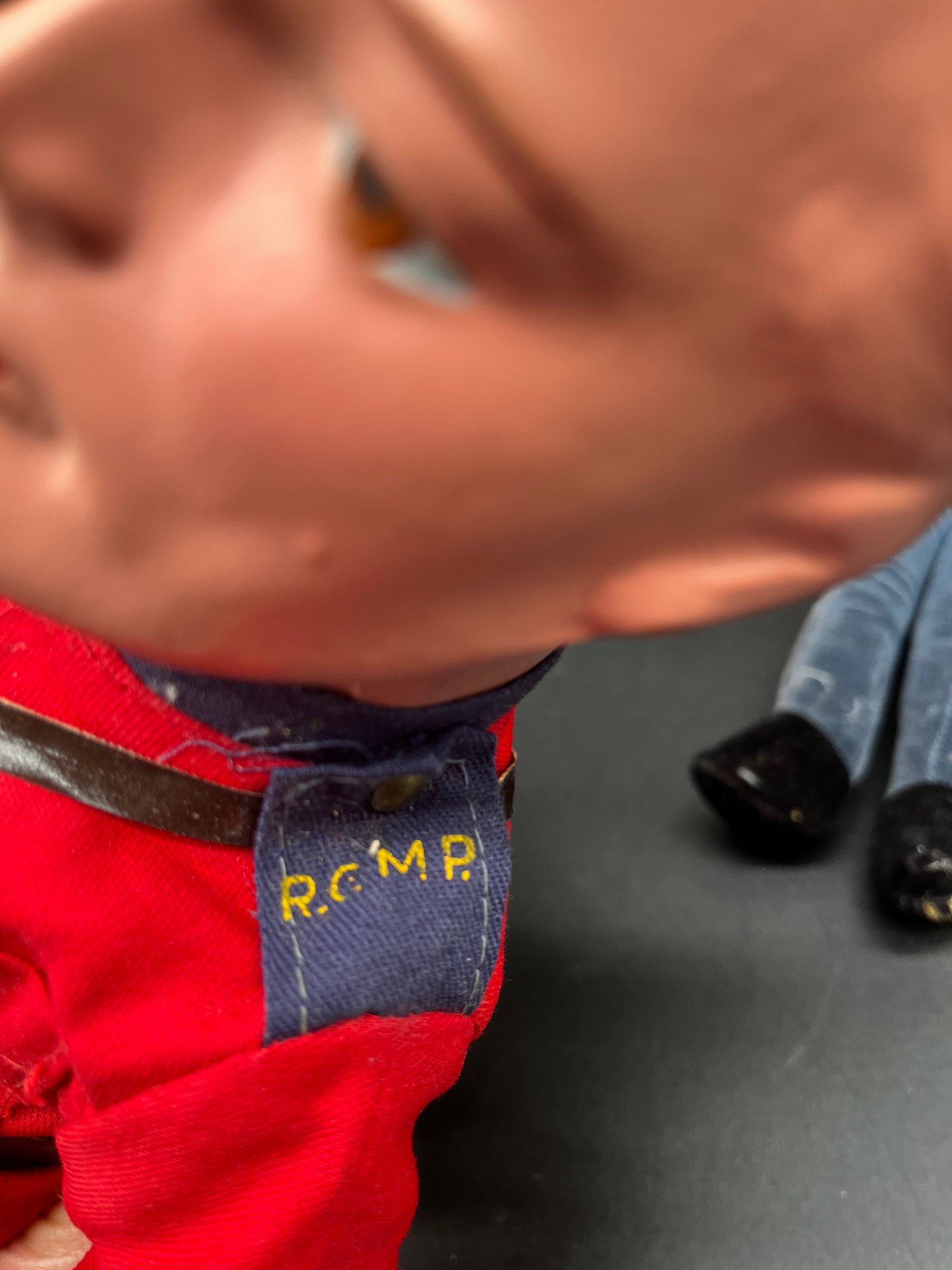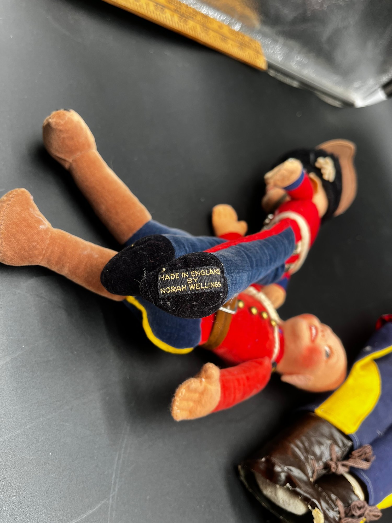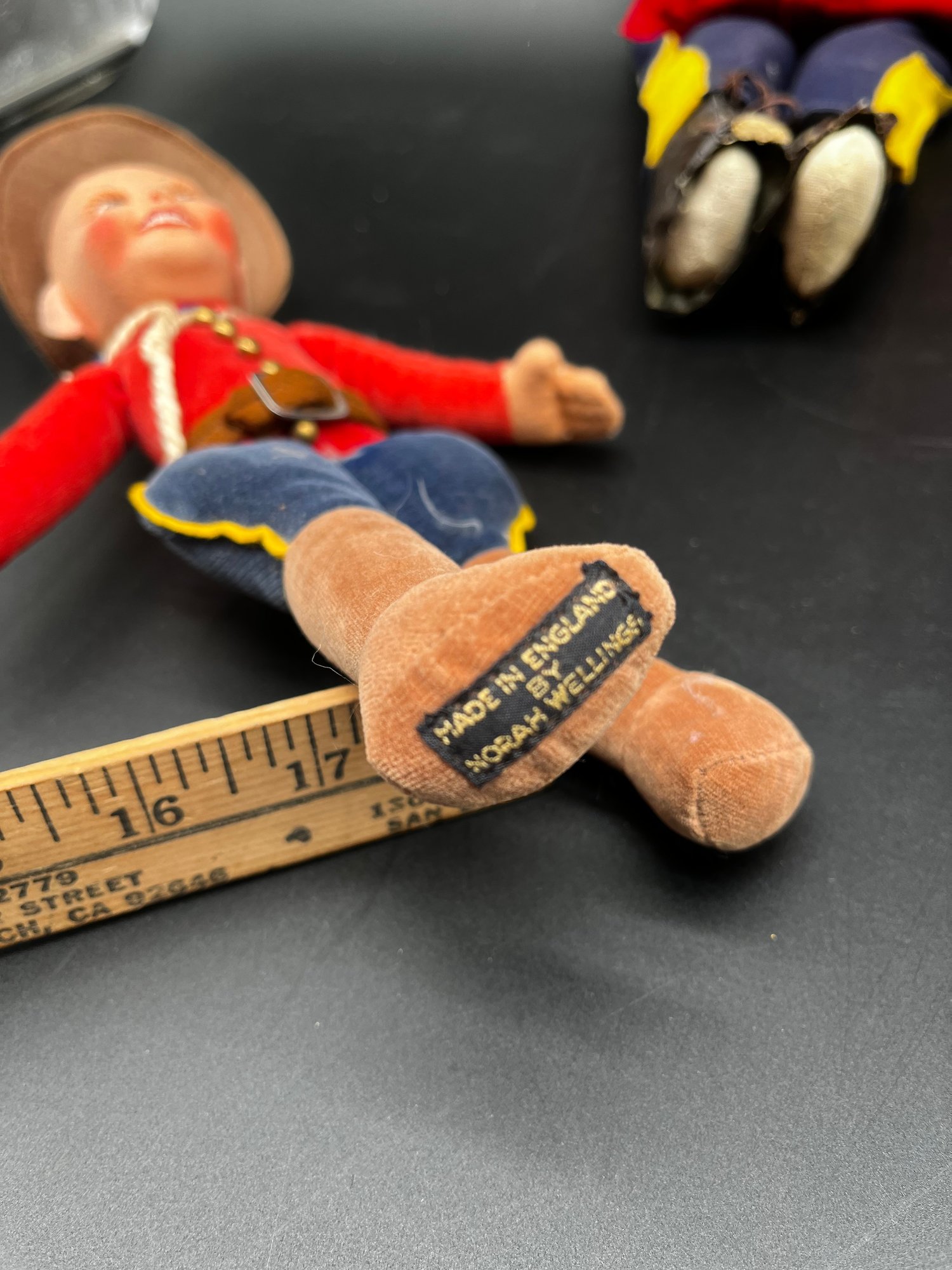 The small Royal Canadian mounted policeman and the grenadier are made by Norah Wellings from England