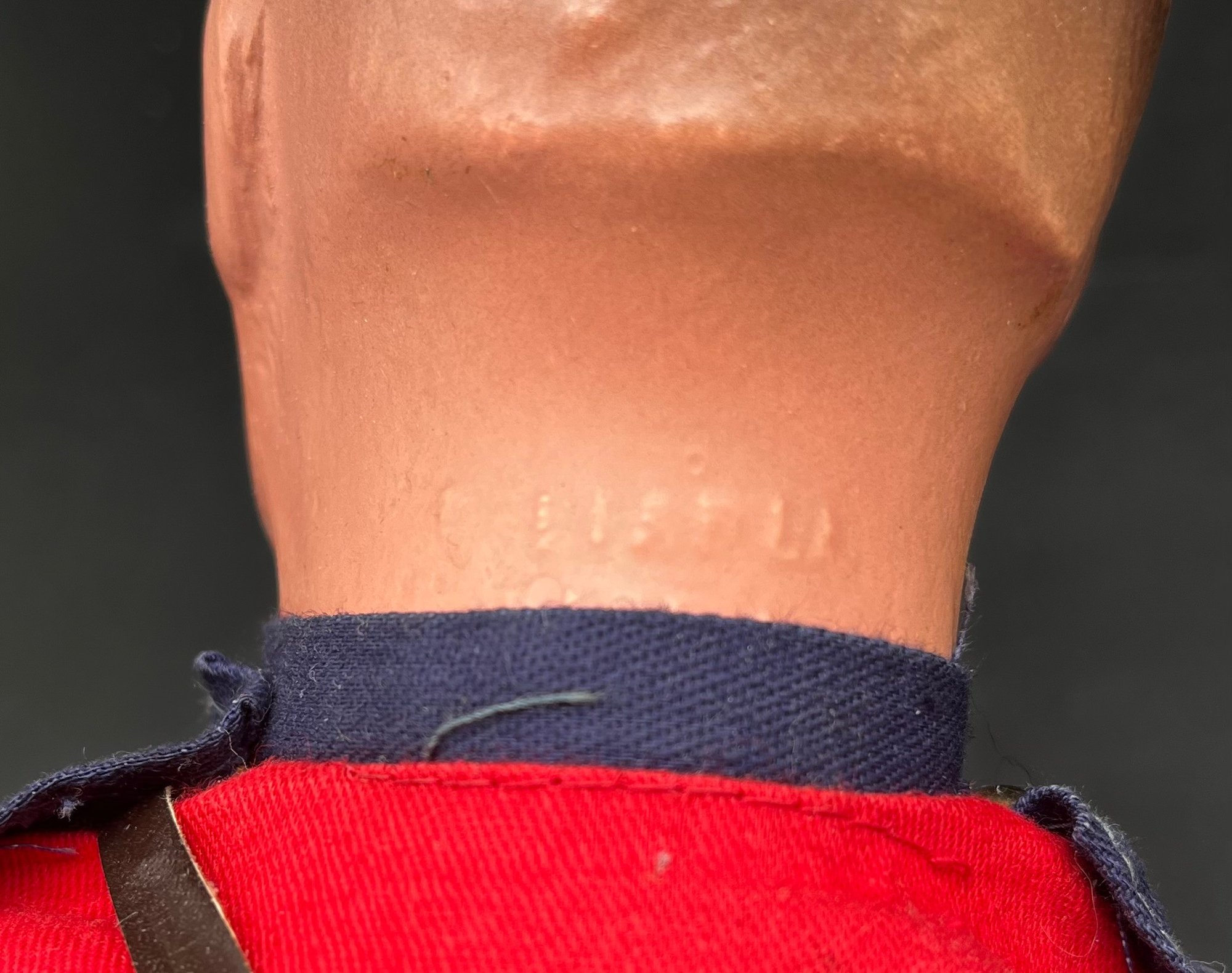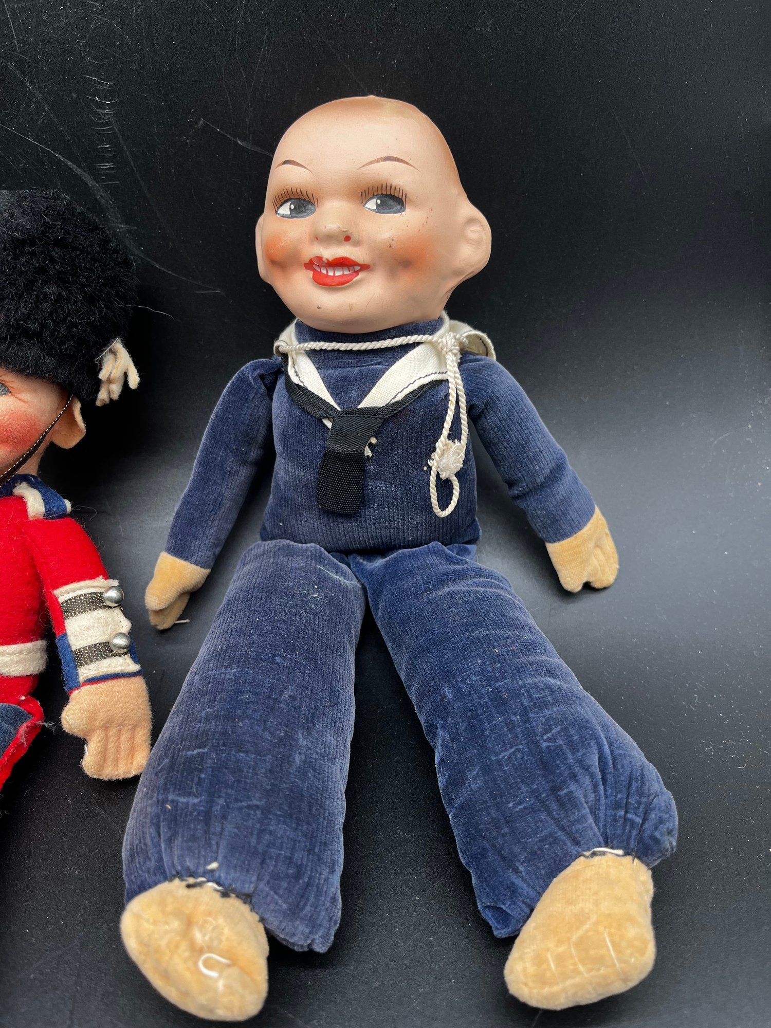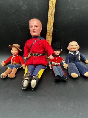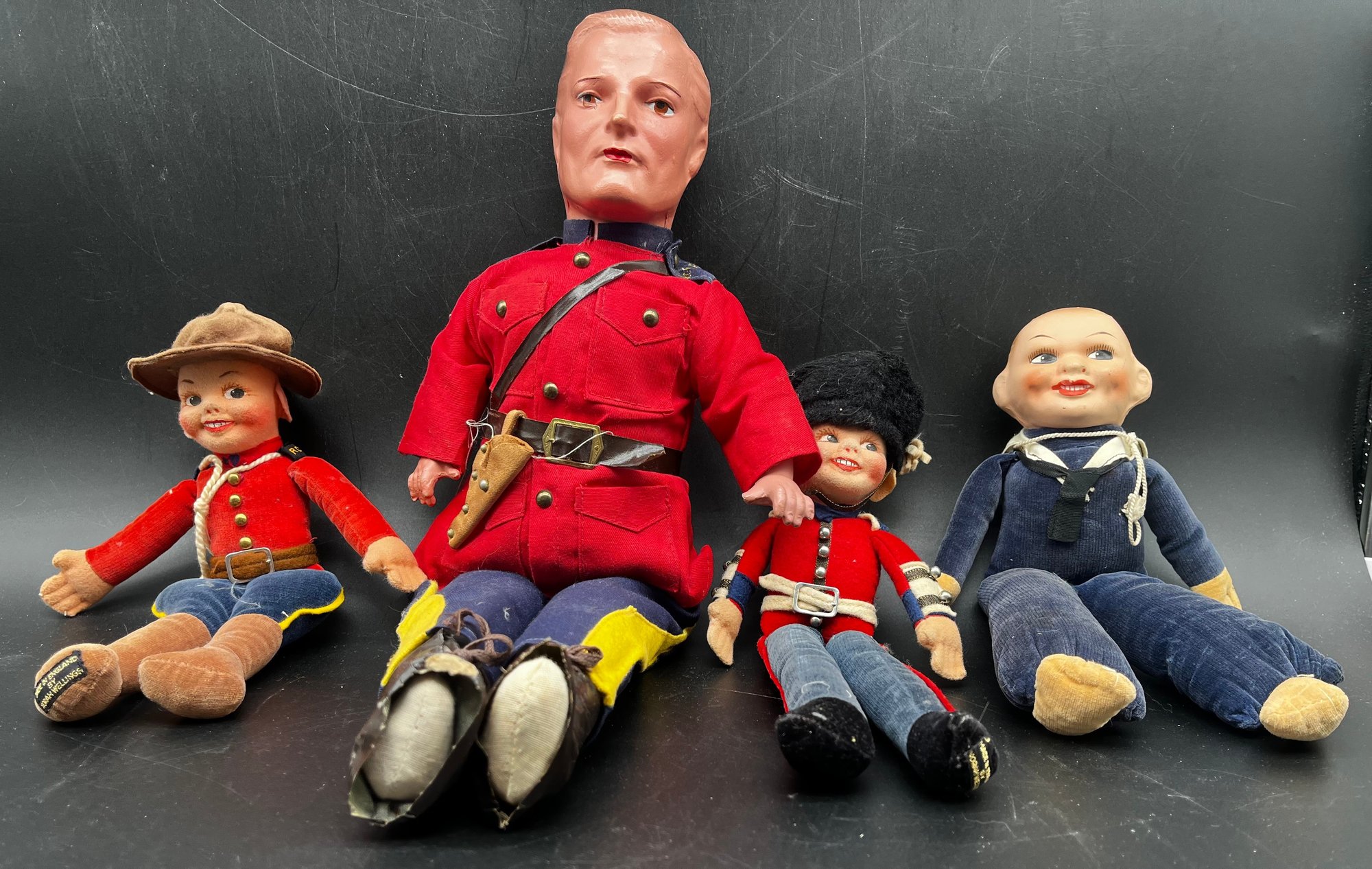 The small Royal Canadian mounted policeman and the grenadier are made by Norah Wellings from England