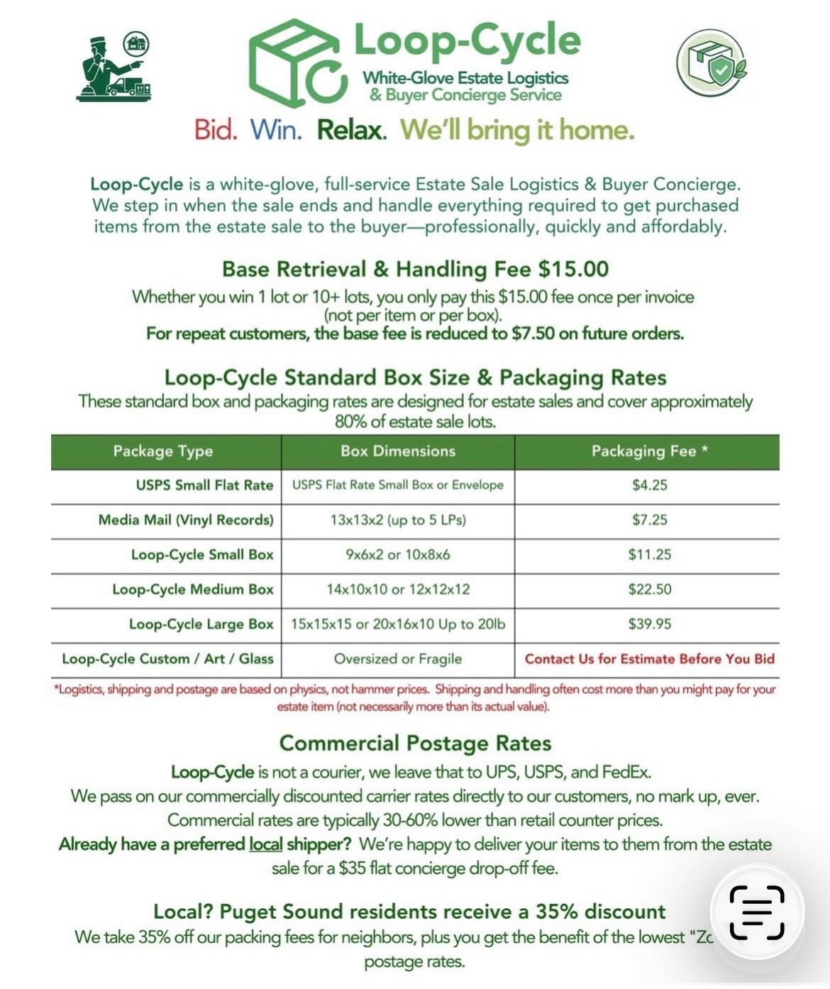 Local bidders are encouraged to visit our store to view items