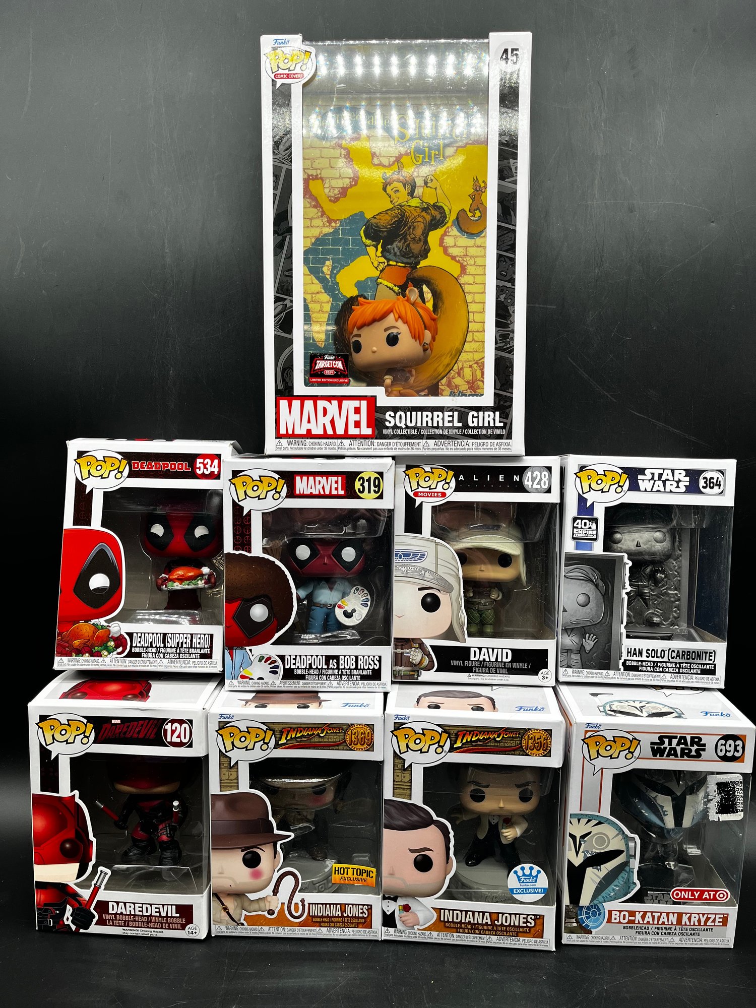 9 Marvel, Alien, And Star Wars FUNKO Pop Figurines NIB