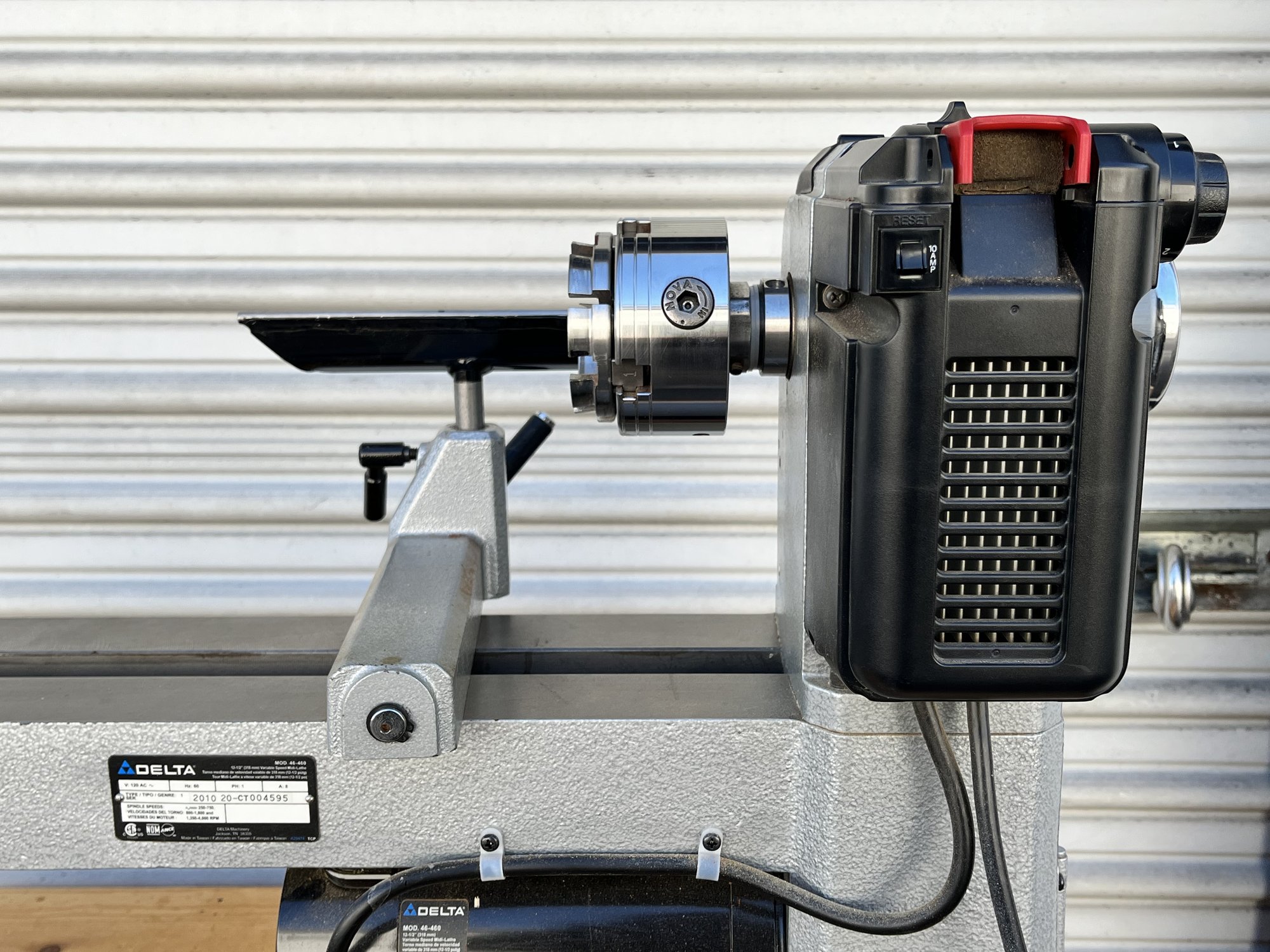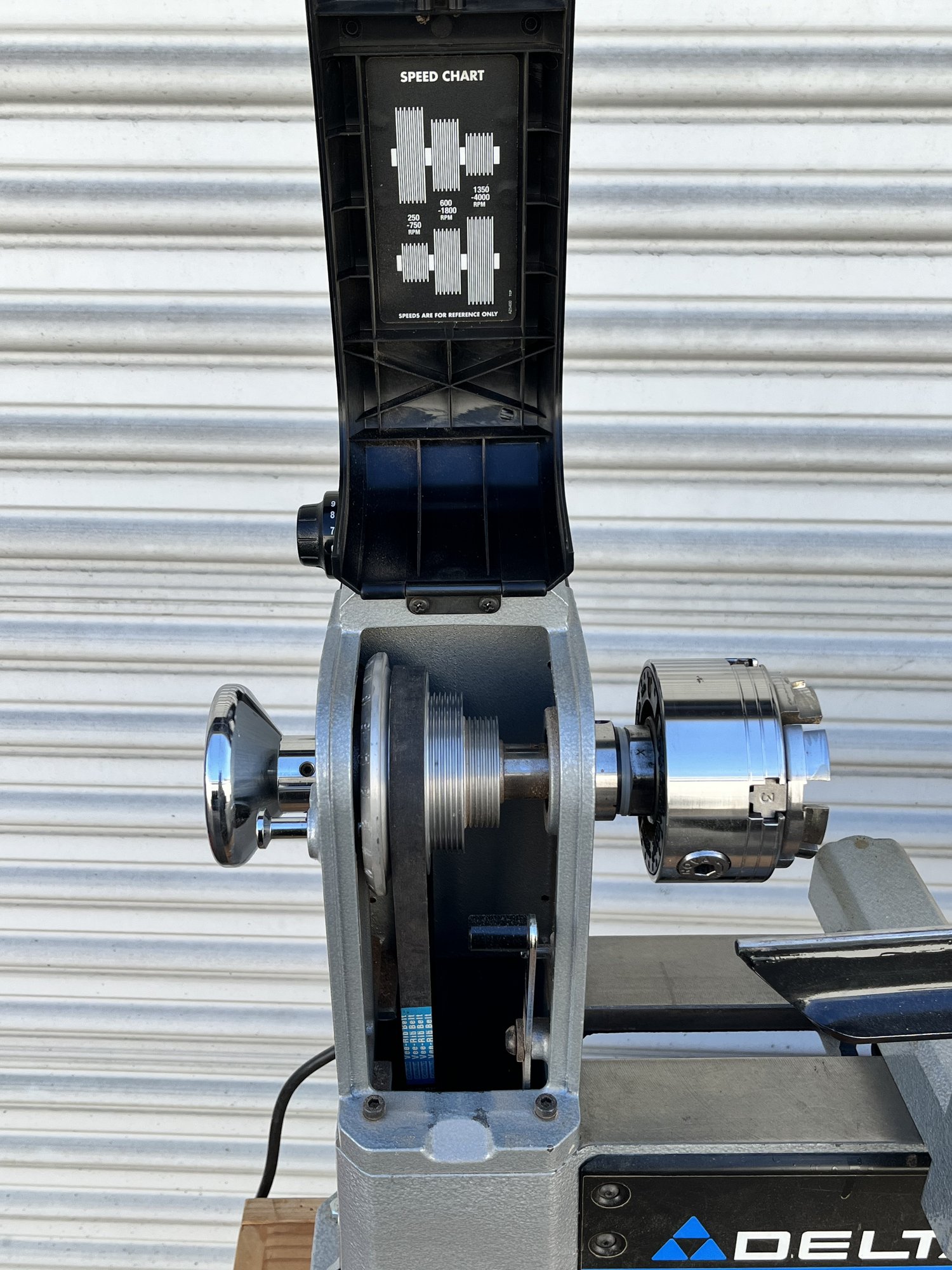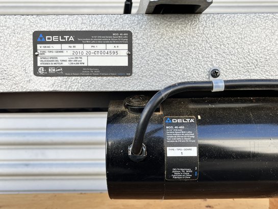 Delta 46-460 Variable Speed Electric Midi-Lathe. Tested and appears to work. Lathe is bolted into a hand-made rolling cart. Sold as is.
