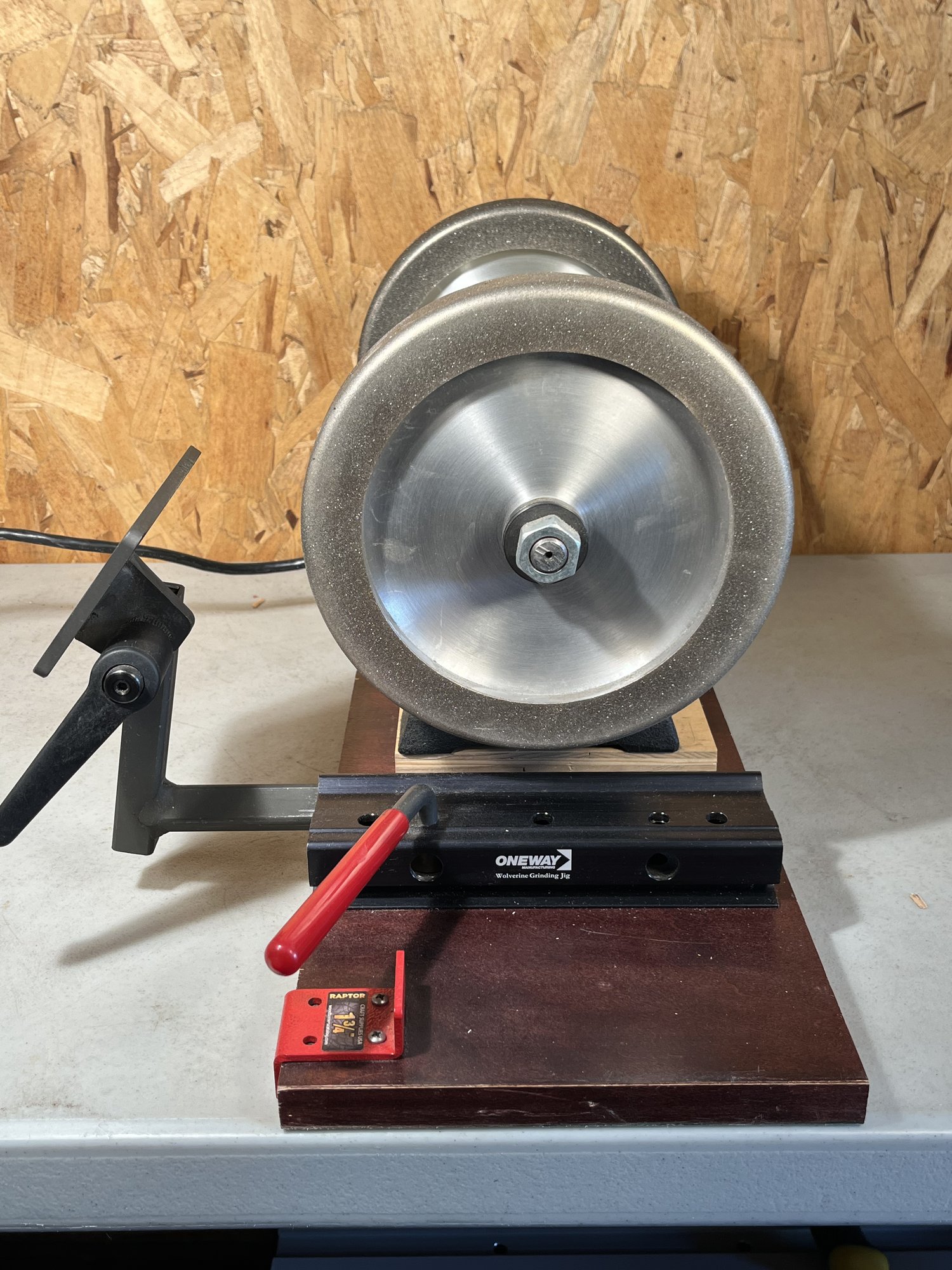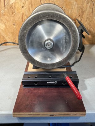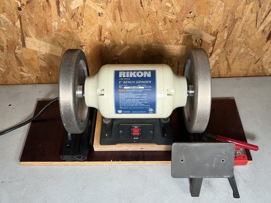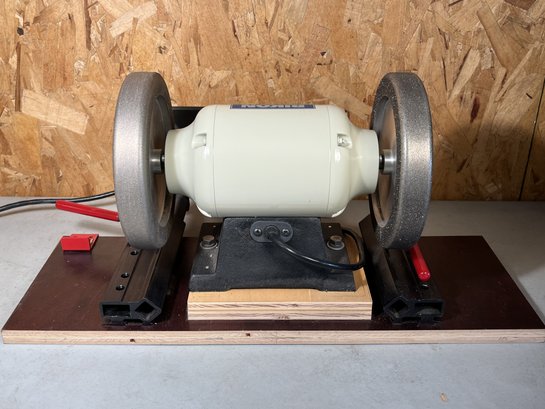 Rikon Low Speed 8" Bench Grinder on custom Built Platform. Tested and appears to work. Sold as is.