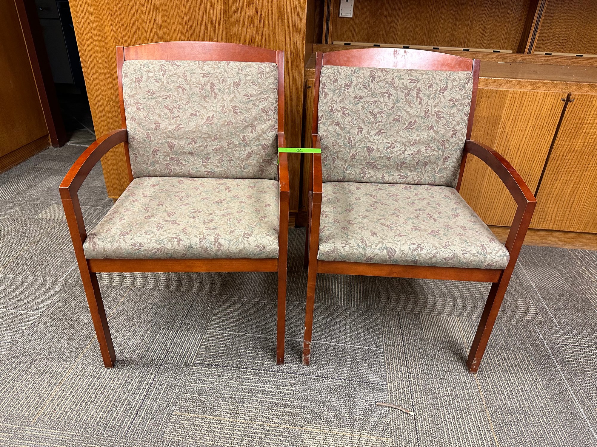 Pair of conference room wood & upholstered chairs