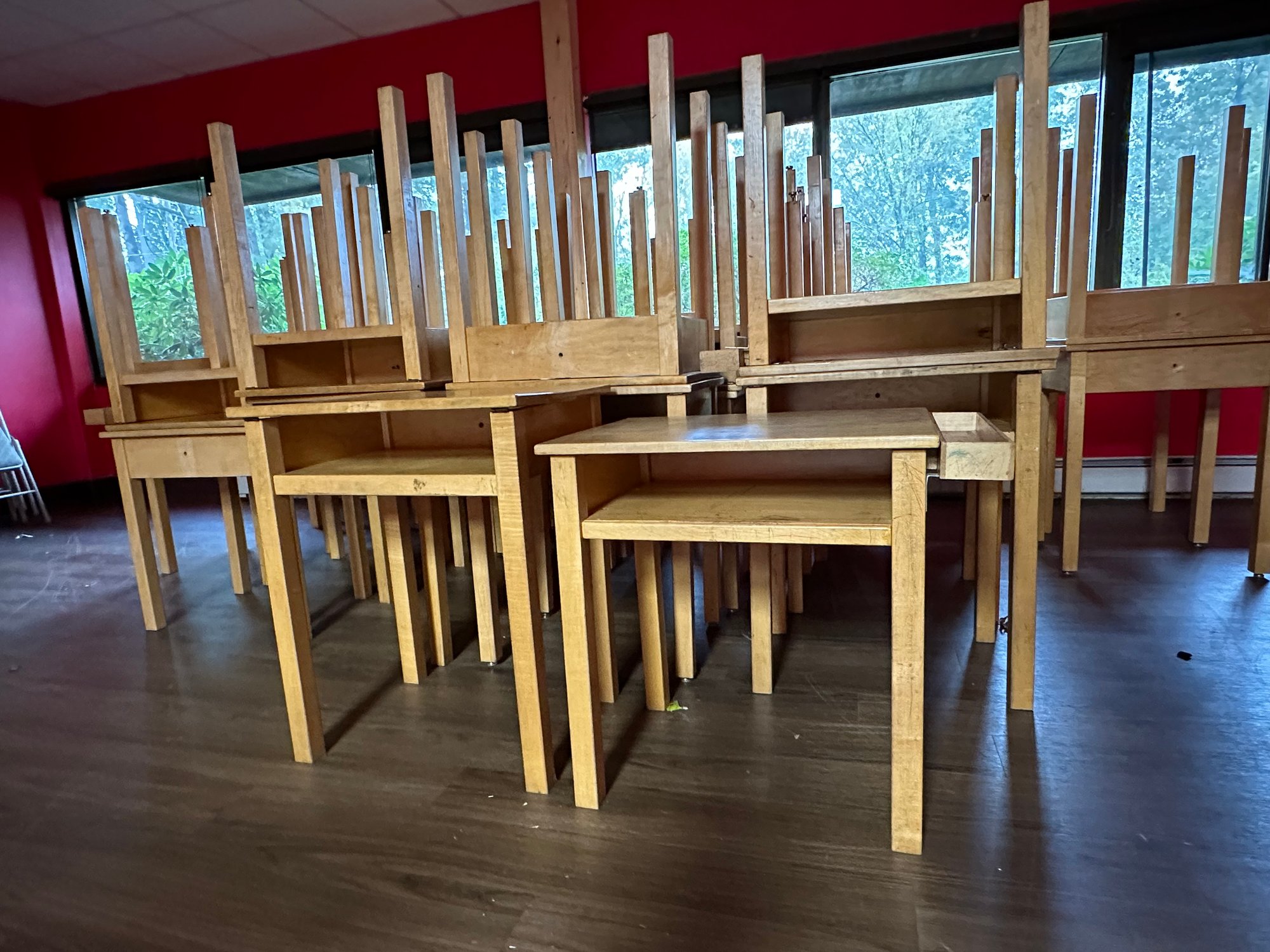 Lot of 4 maple (?) school desks* available in two heights (pictured) that were purchased for over $150 EACH.