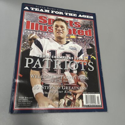 This 2004 Sports Illustrated magazine features Tom Brady, the legendary football player from the New England Patriots. It is a vintage and original publication that commemorates his winning of the Super Bowl three times. The magazine is a must-have for any sports memorabilia collector and is in an ungraded state. The country of manufacture is the United States, and it has not been modified. This publication is a great addition to any collection and a perfect way to celebrate the career of one of the greatest quarterbacks in history.