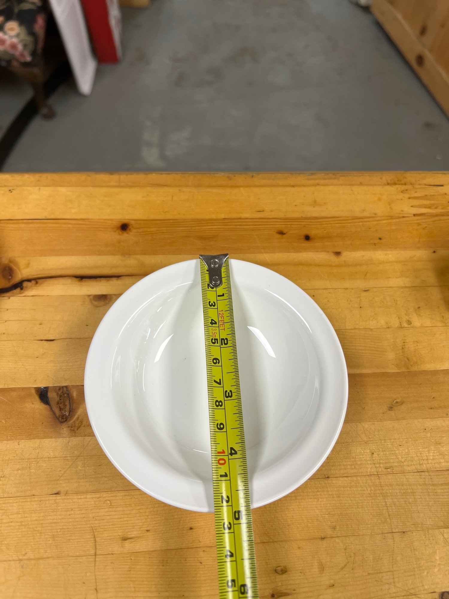 3 Pyroceram White Condiment Dishes as seen as pictured.