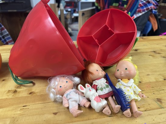 Has all the friends! 3 dolls included with Strawberry carry case! Perfect nostalgia - she stilll smells like strawberries.