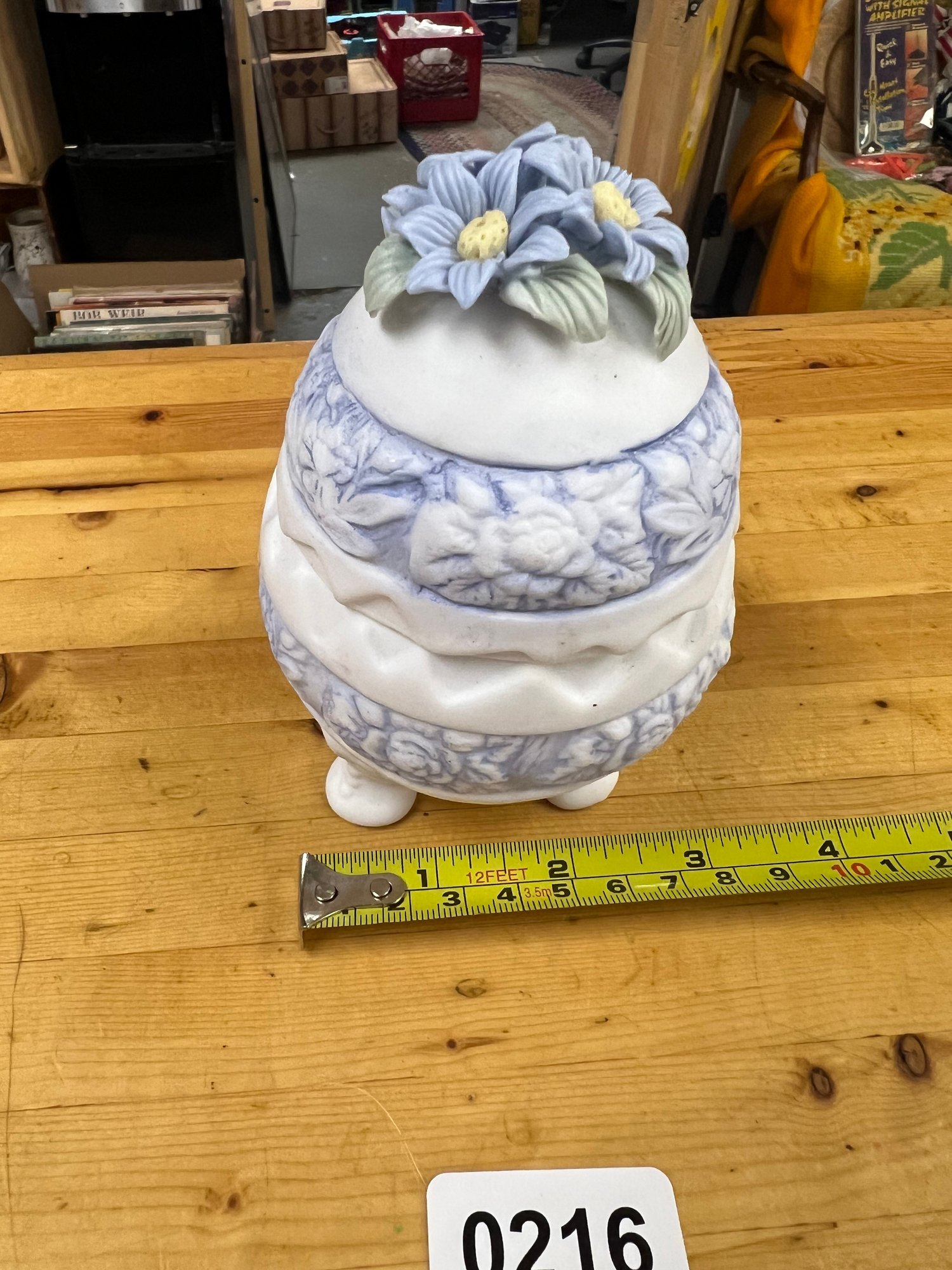 Ceramic Egg Dish with Blue Flowers – This charming 3-footed serving piece brings a touch of vintage elegance to your table. Perfect for deviled eggs, appetizers, or as a decorative accent in your kitchen or dining room.