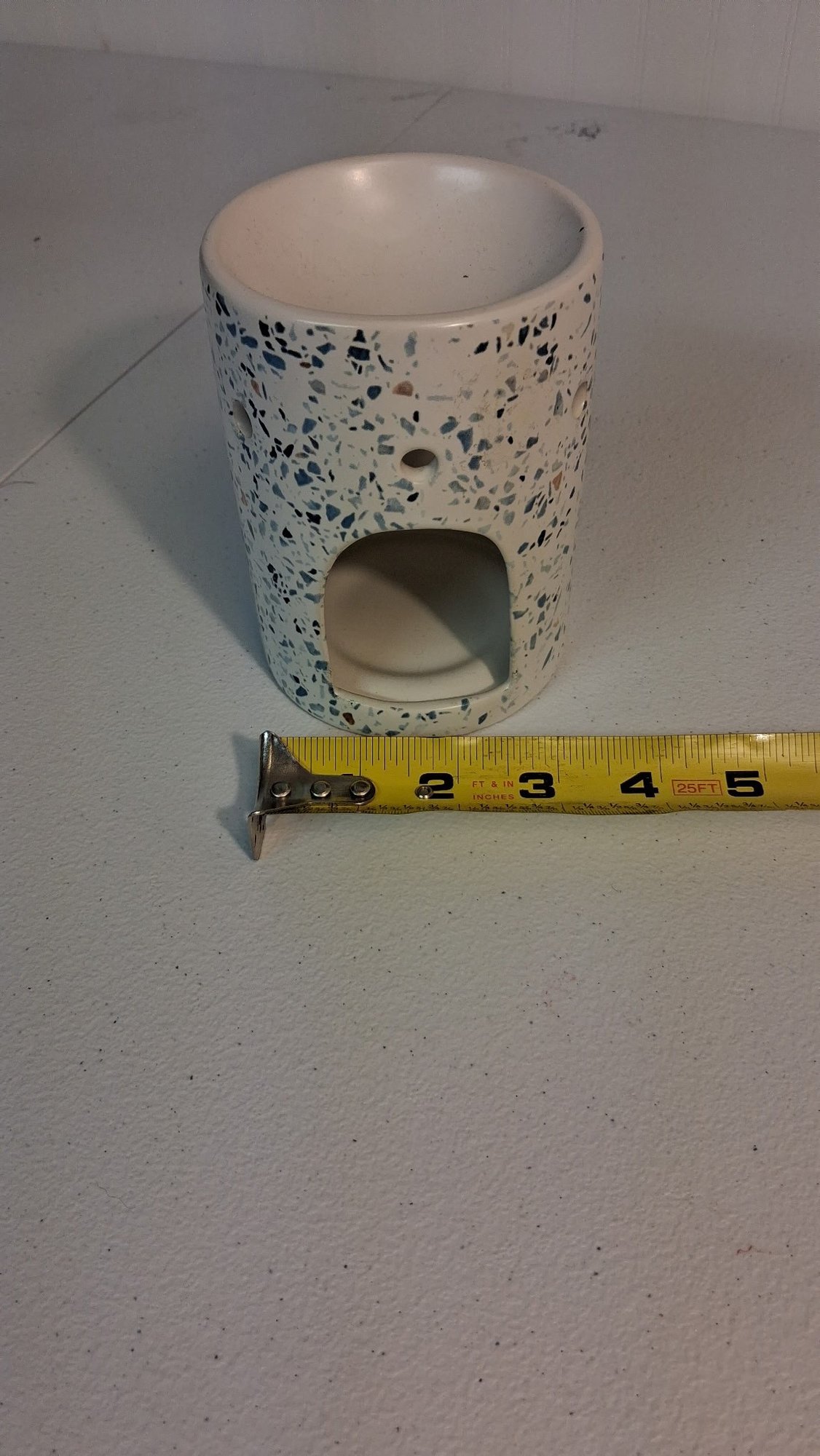 Ceramic Wax Melt/Oil Burner β terrazzo-style design with tealight opening. Pre-owned, clean and ready for use; perfect for home fragrance or dΓ©cor.