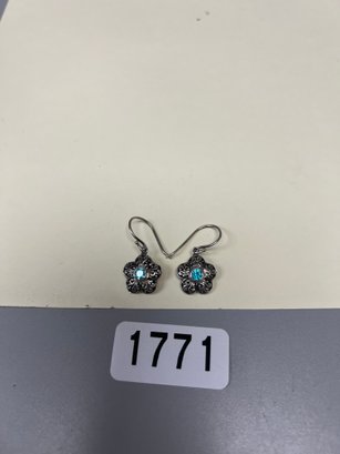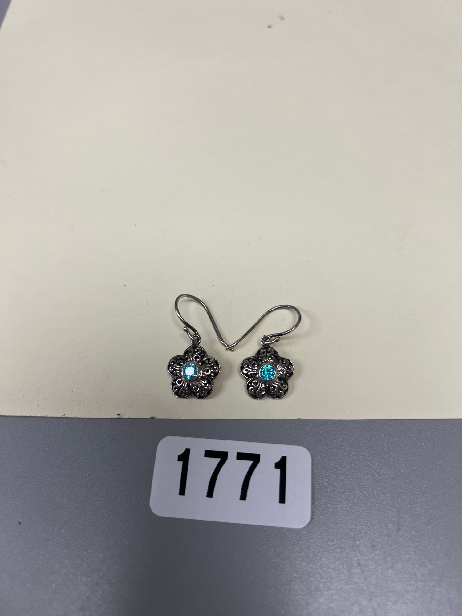 Up for auction is a delightful pair of **sterling silver flower earrings**, designed to add a touch of floral elegance to your jewelry collection. These earrings feature intricate detailing and beautiful blue accents, making them a lovely accessory for any occasion.