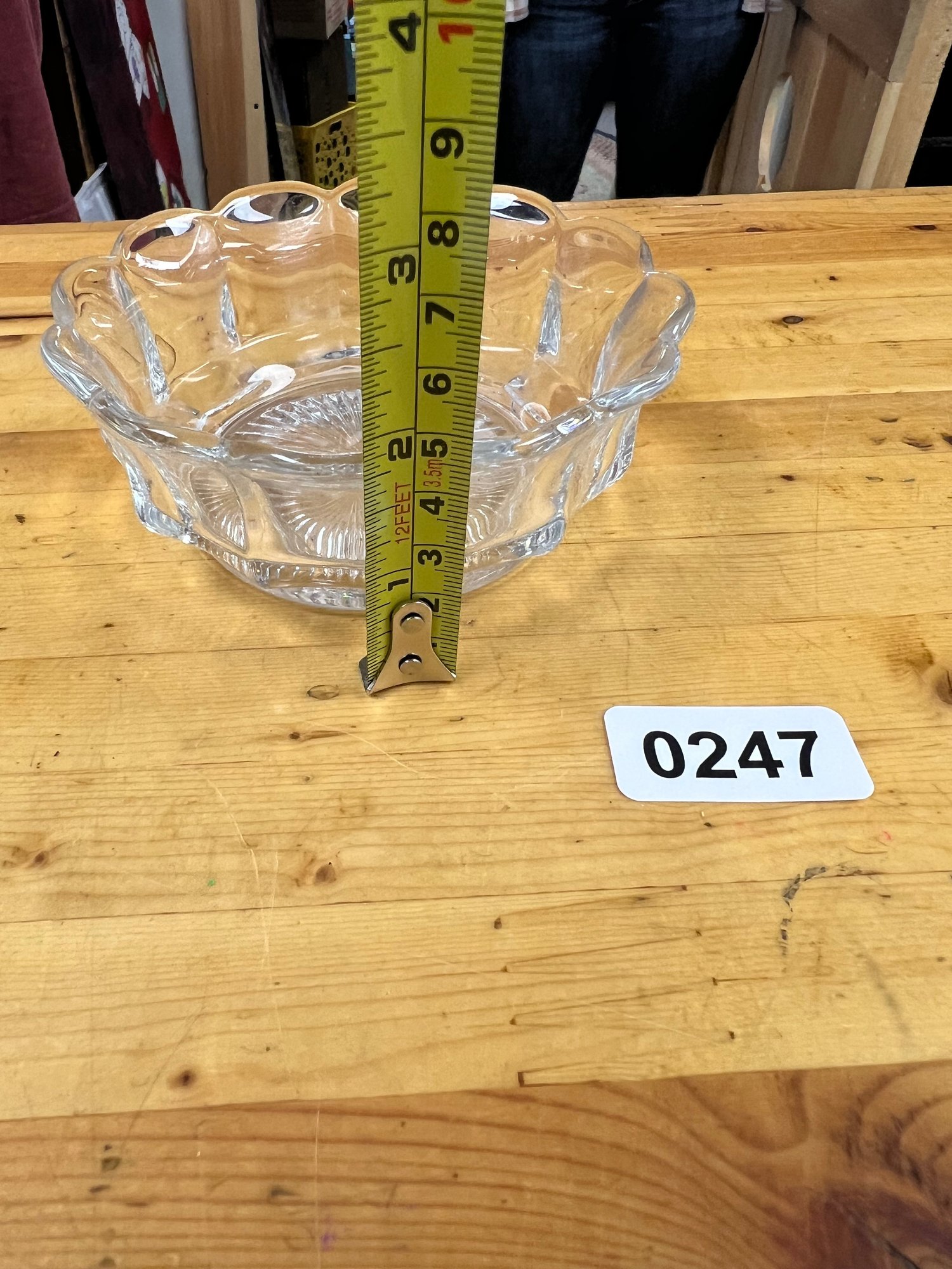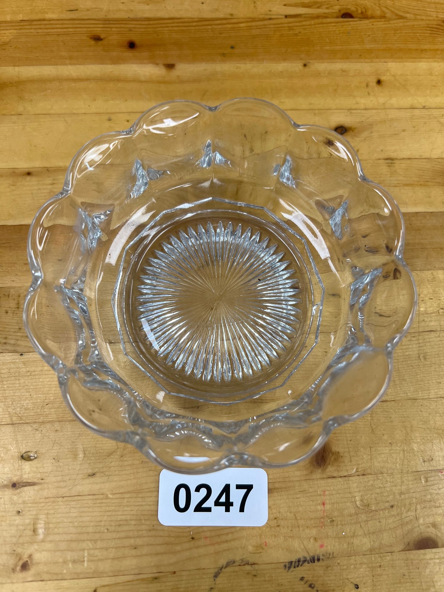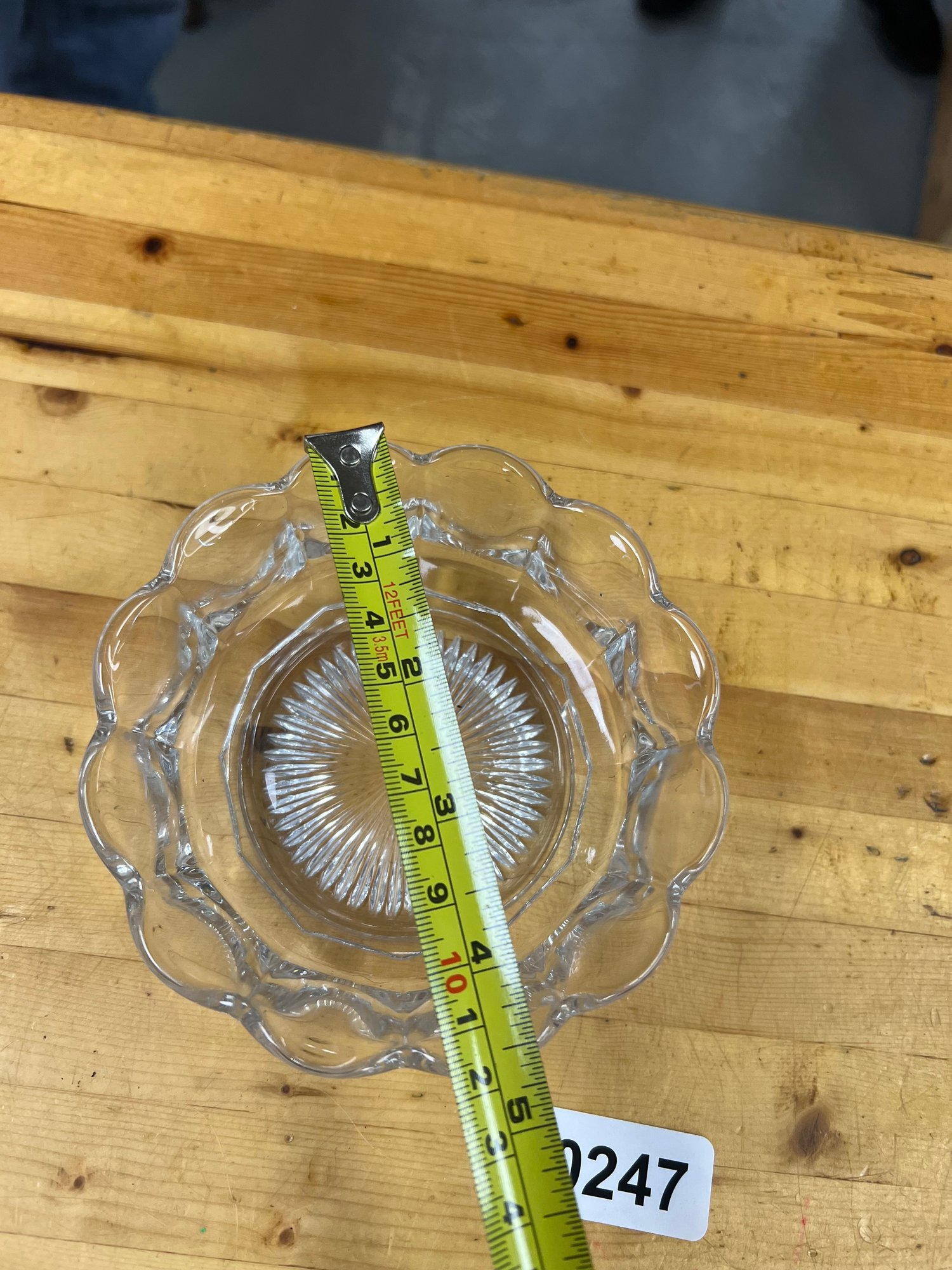 Clear Glass Scalloped Dish with Marking – A lovely vintage piece with delicate scalloped edges and a maker’s mark. Perfect as a candy dish, trinket holder, or elegant table accent.