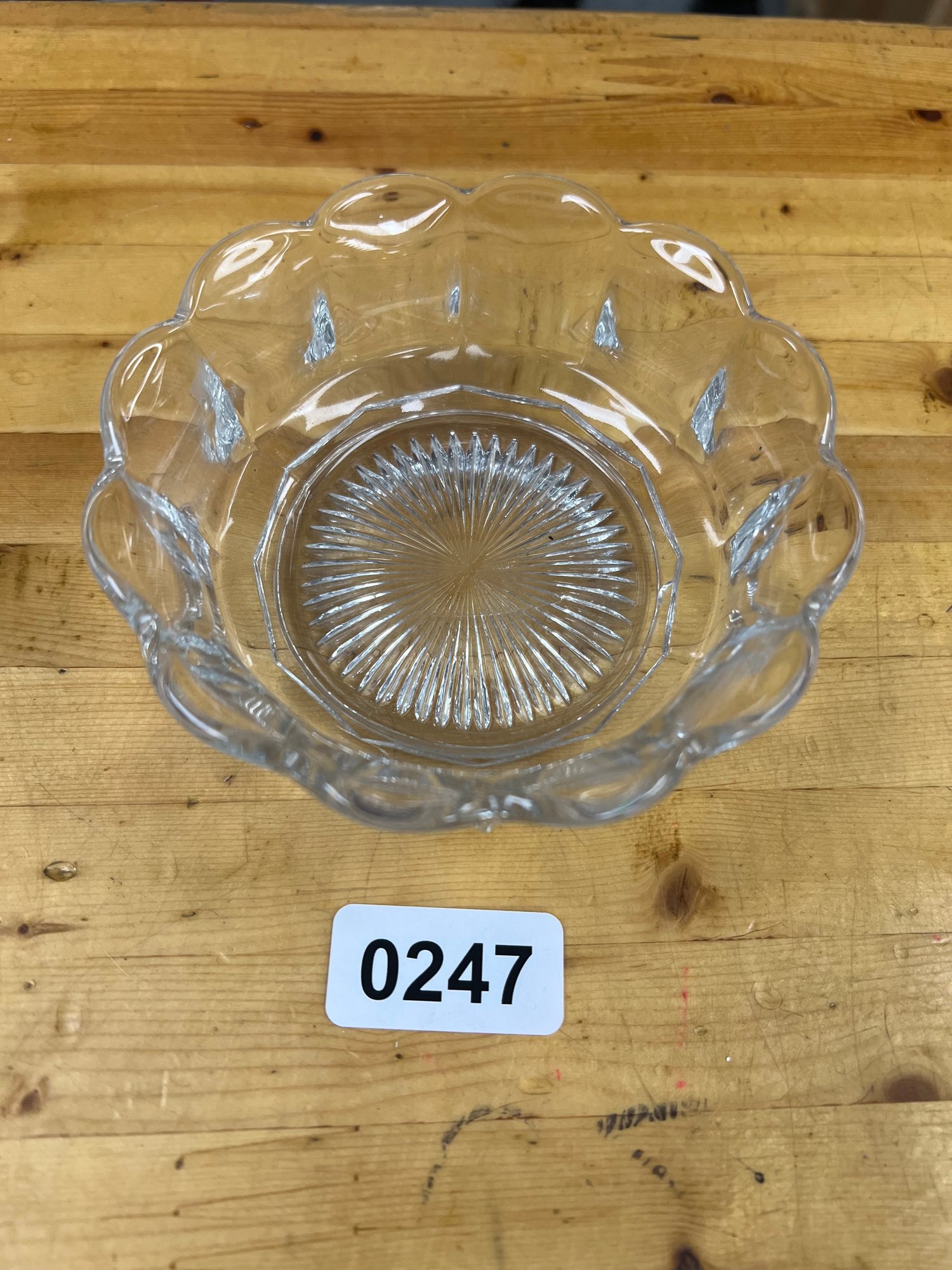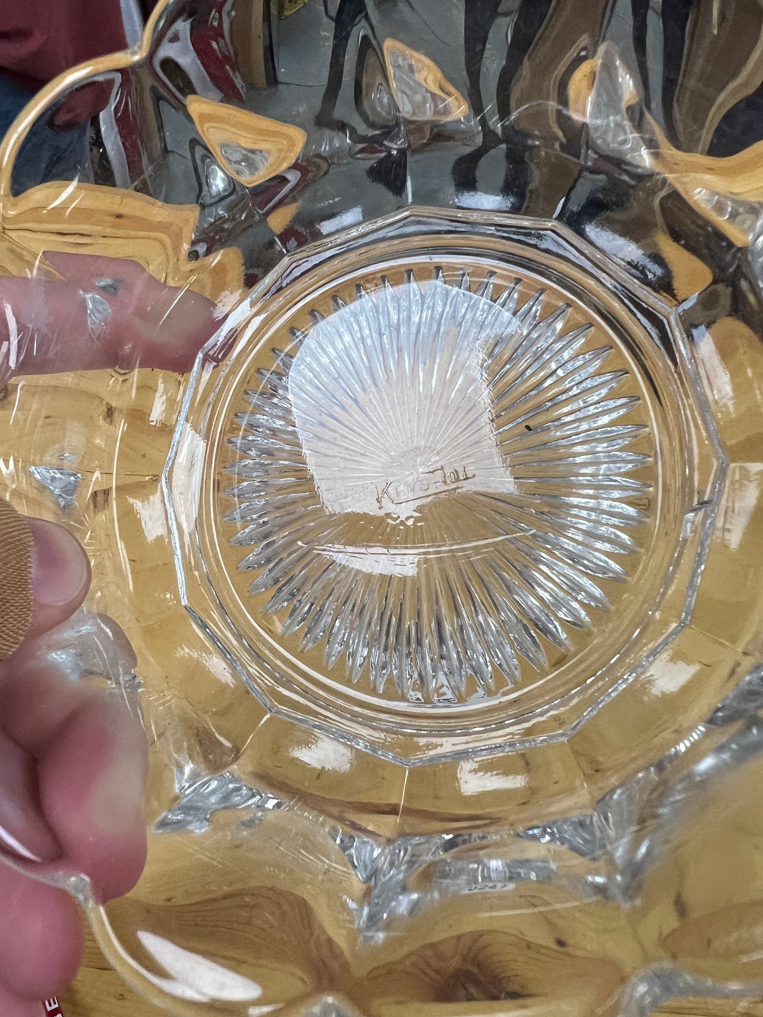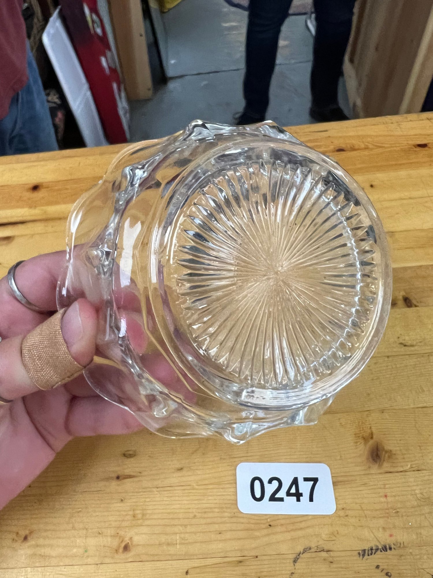 Clear Glass Scalloped Dish with Marking – A lovely vintage piece with delicate scalloped edges and a maker’s mark. Perfect as a candy dish, trinket holder, or elegant table accent.