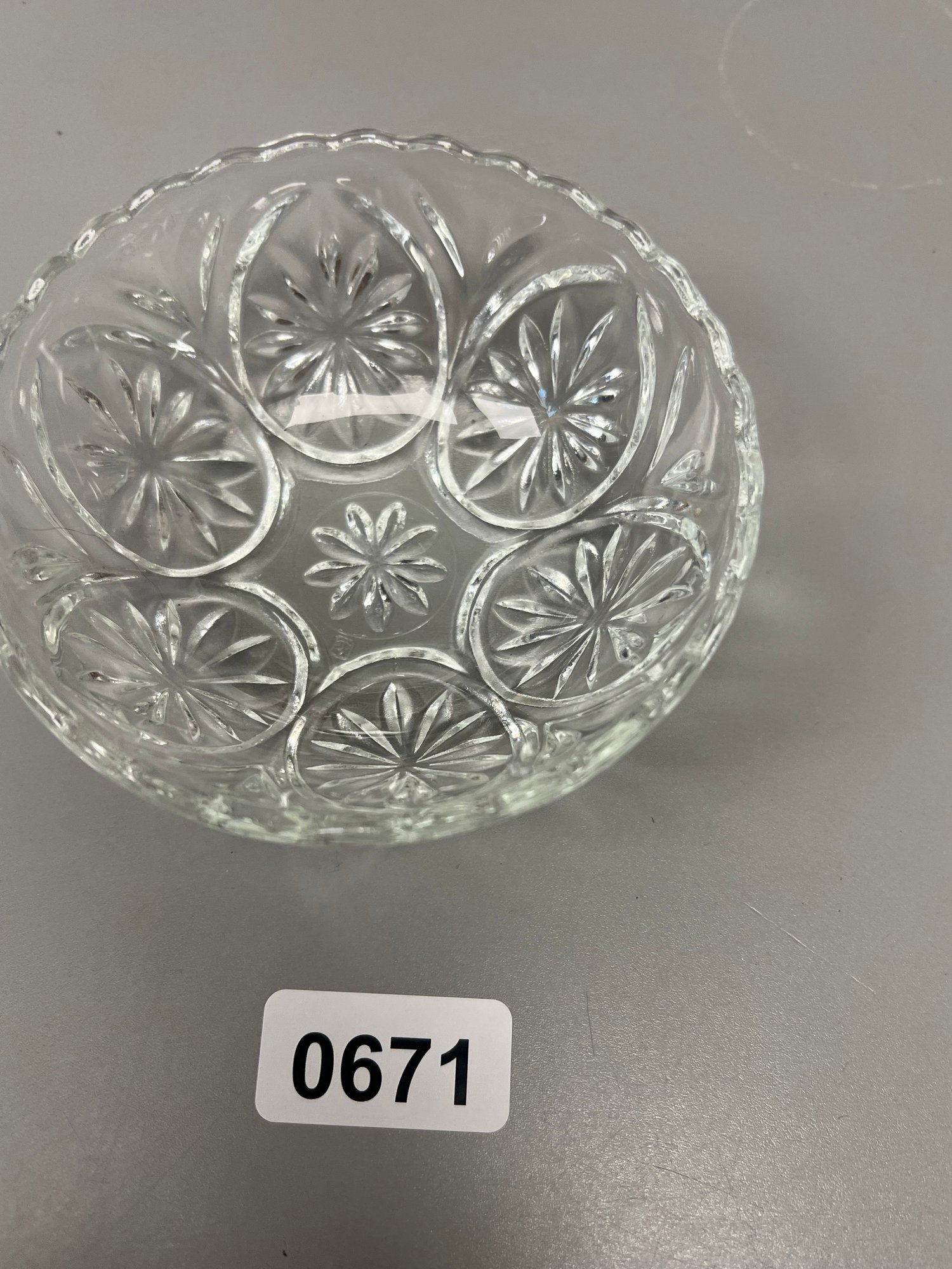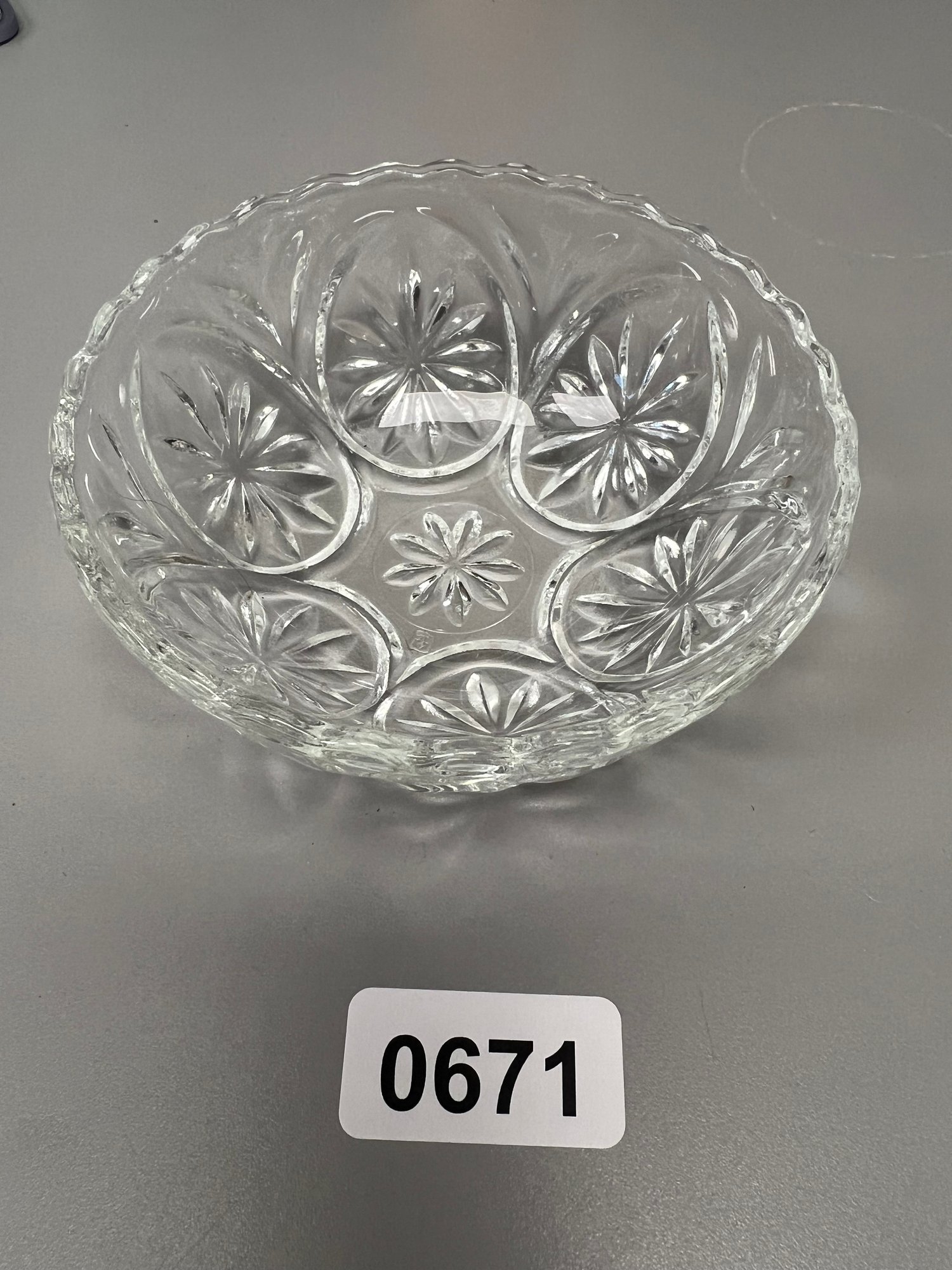 Elegant cut-glass bowl featuring scalloped edges — sparkling and timeless.