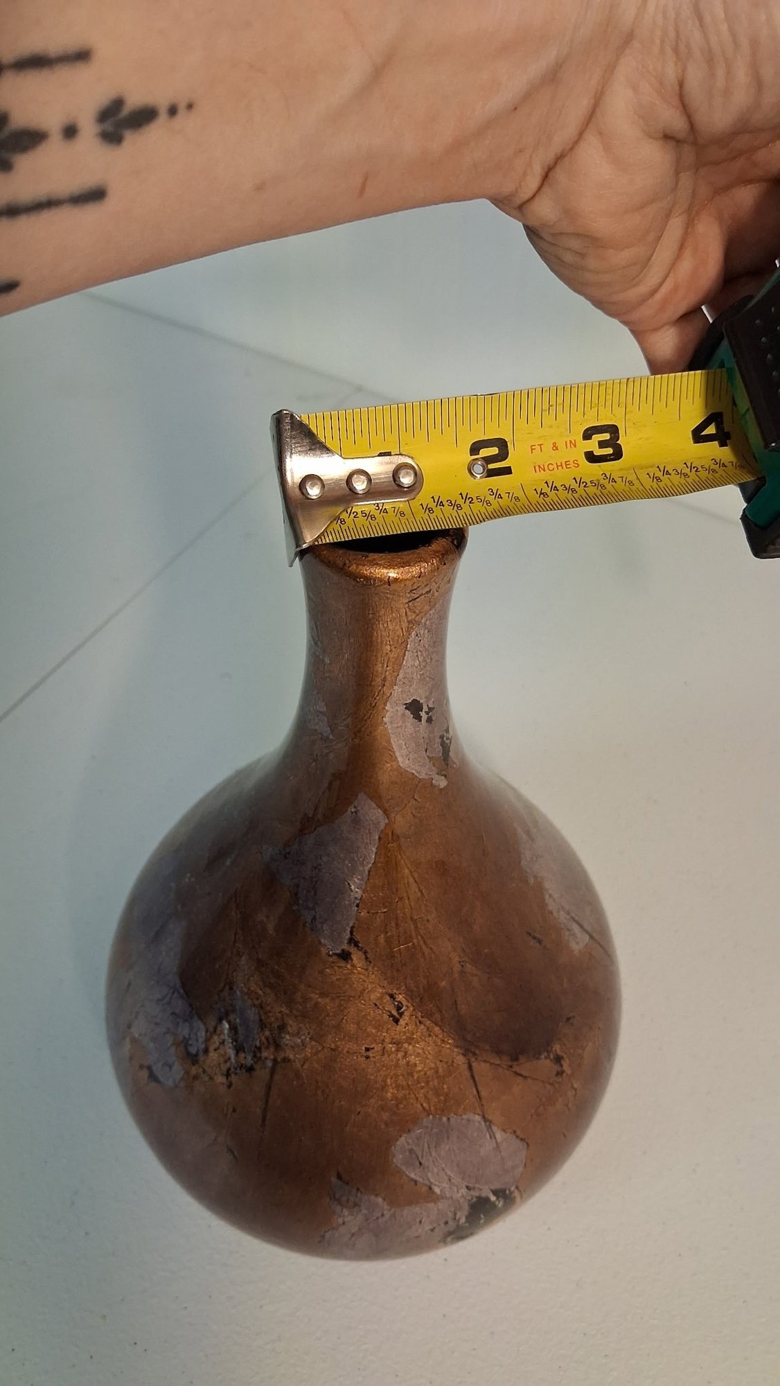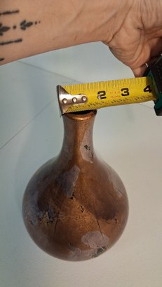 This decorative glass vase features a warm bronze finish with a distressed metallic look, giving it a unique, rustic-modern vibe. Perfect for displaying flowers or as a standalone statement piece.