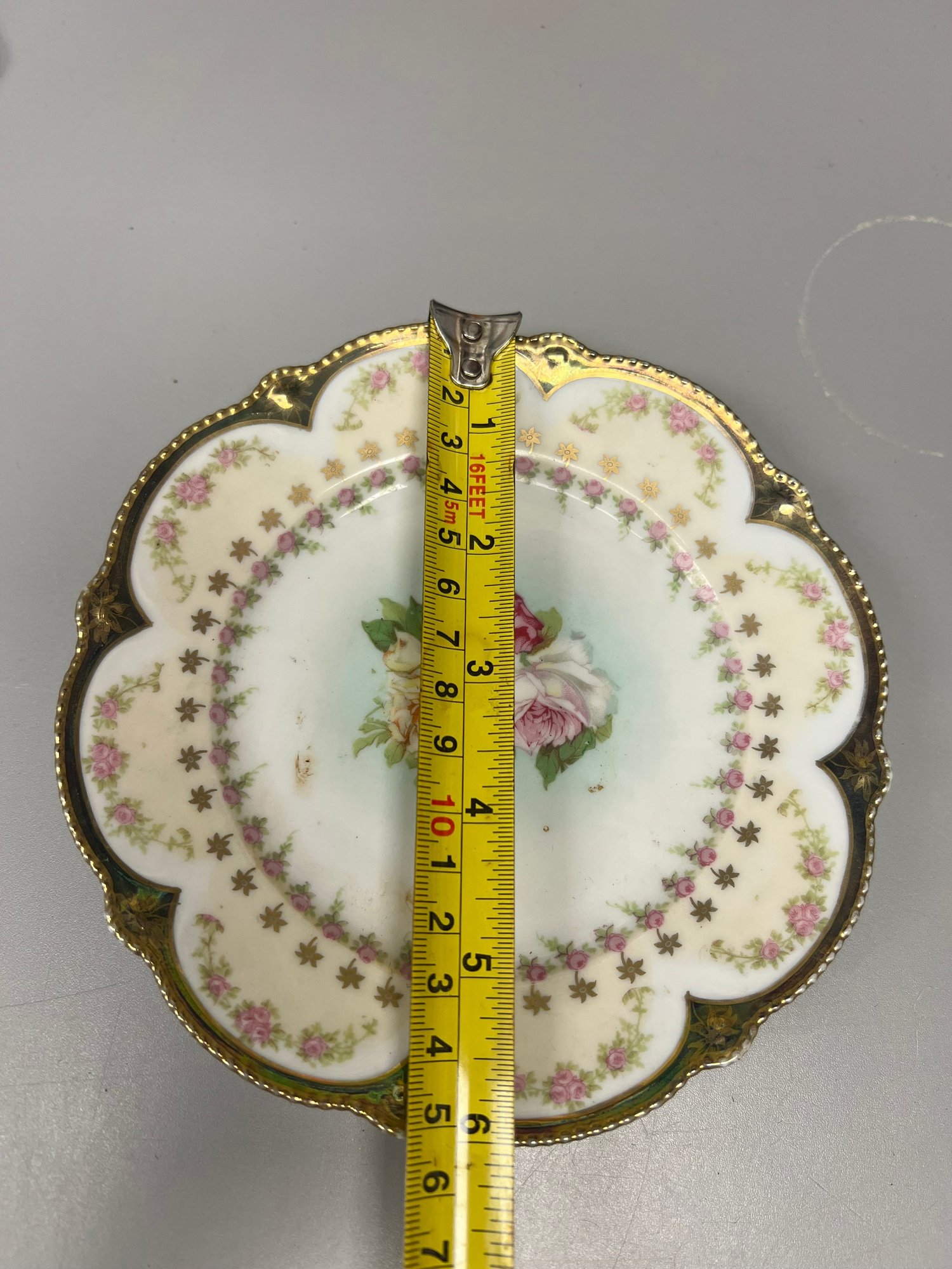 Elegant floral plate with rich gold trim — perfect for display or wall décor.