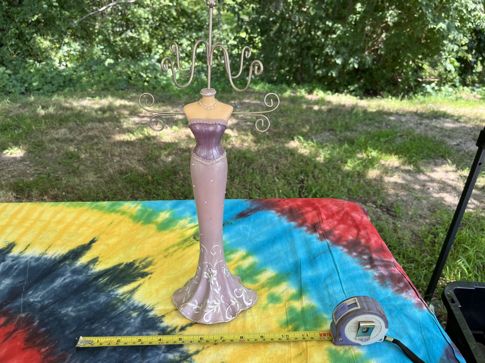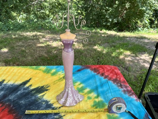 Showcase your favorite jewelry in style with this elegant jewelry display featuring a purple-dressed woman. This charming display not only keeps your accessories organized but also adds a decorative touch to your vanity or dressing area. A wonderful gift for jewelry lovers or a delightful addition to your own collection!