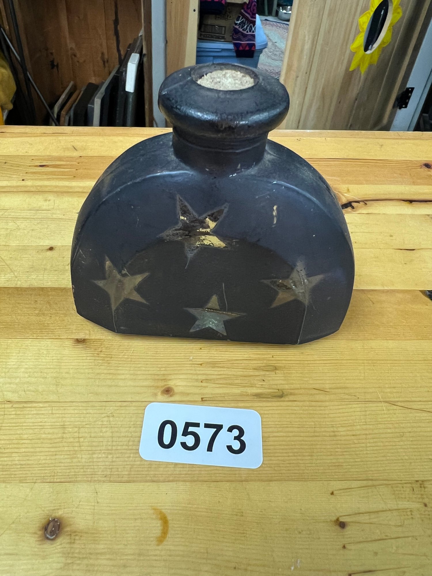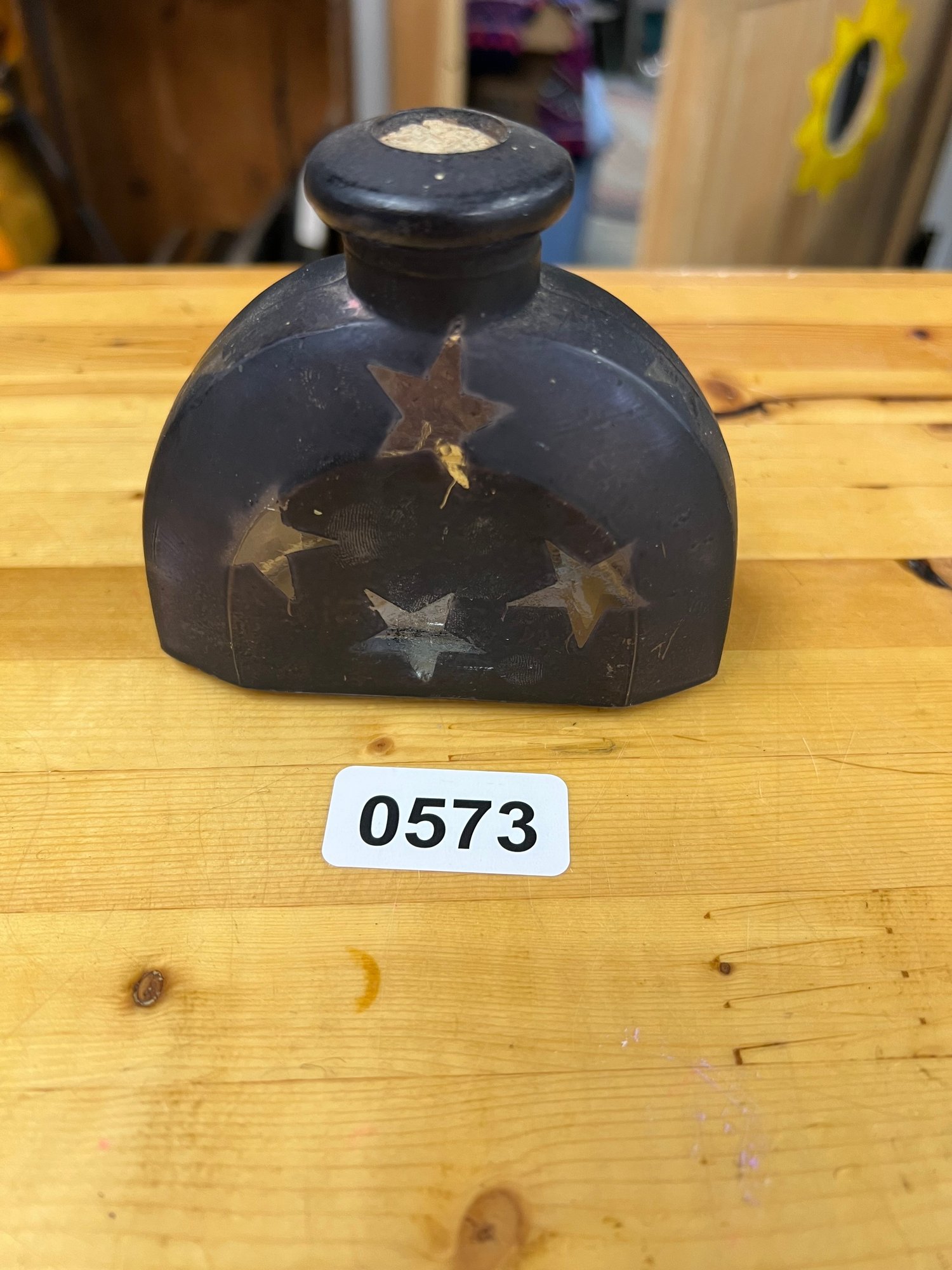 Unique vintage glass bottle featuring embossed star details — great for décor or display.