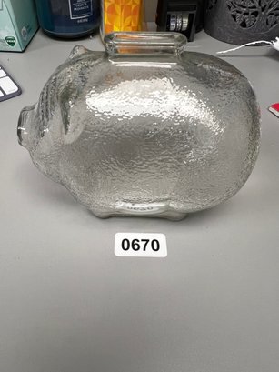 Charming clear glass piggy bank — classic vintage style, perfect for saving or display.