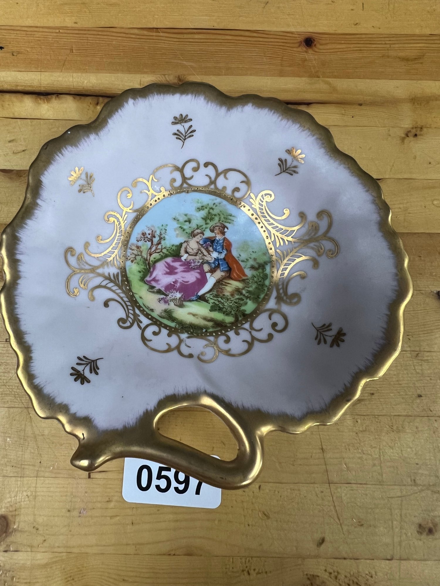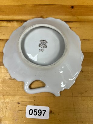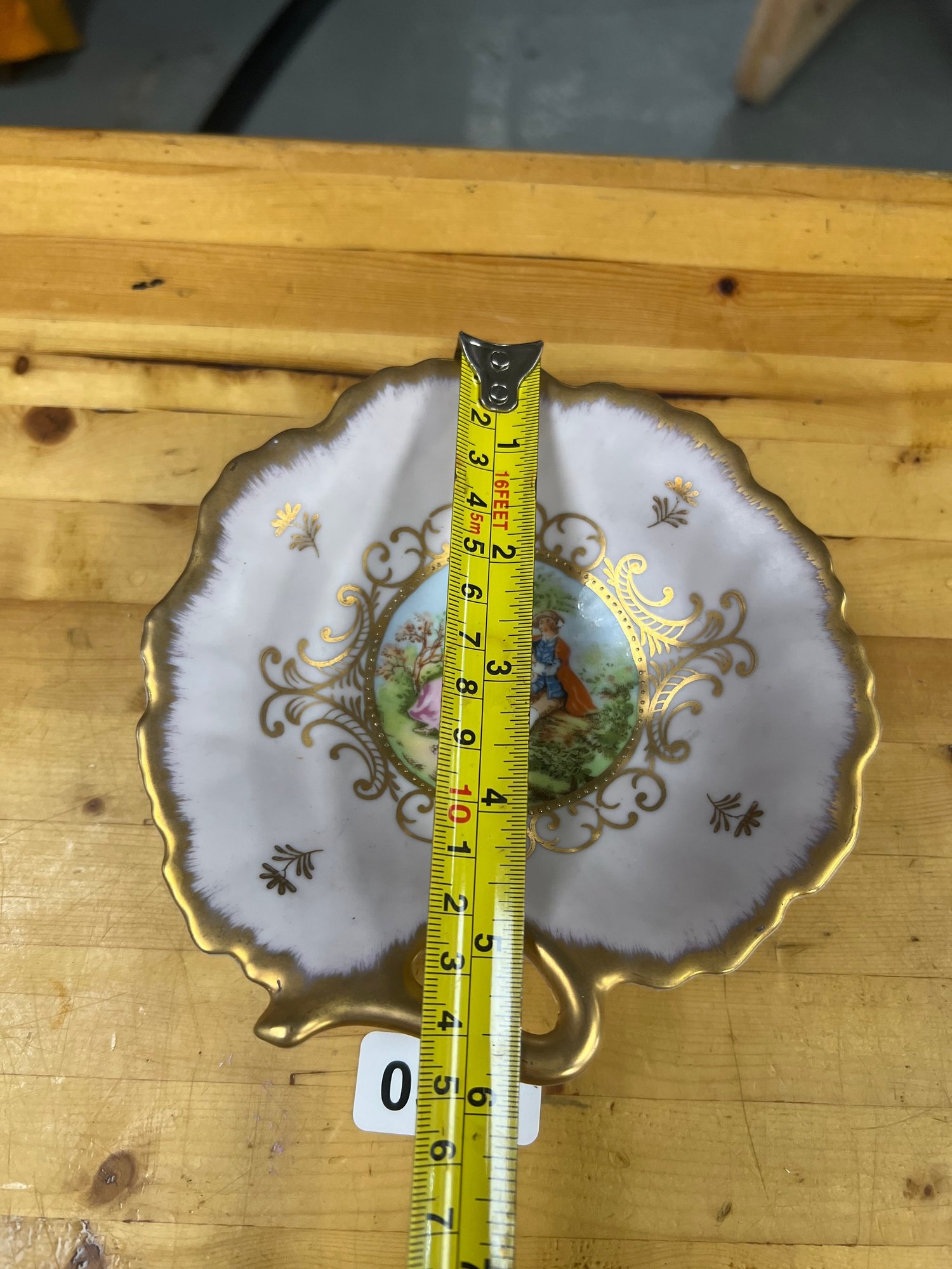 Elegant hand-painted Lefton China dish — delicate florals and gold-trimmed edge.