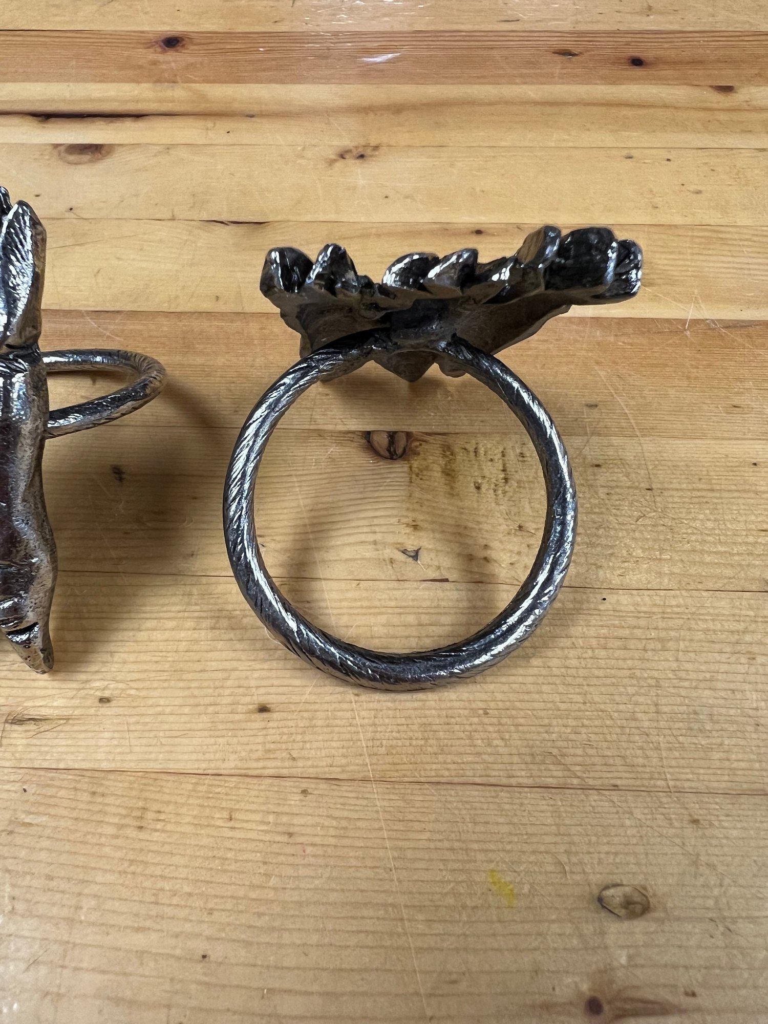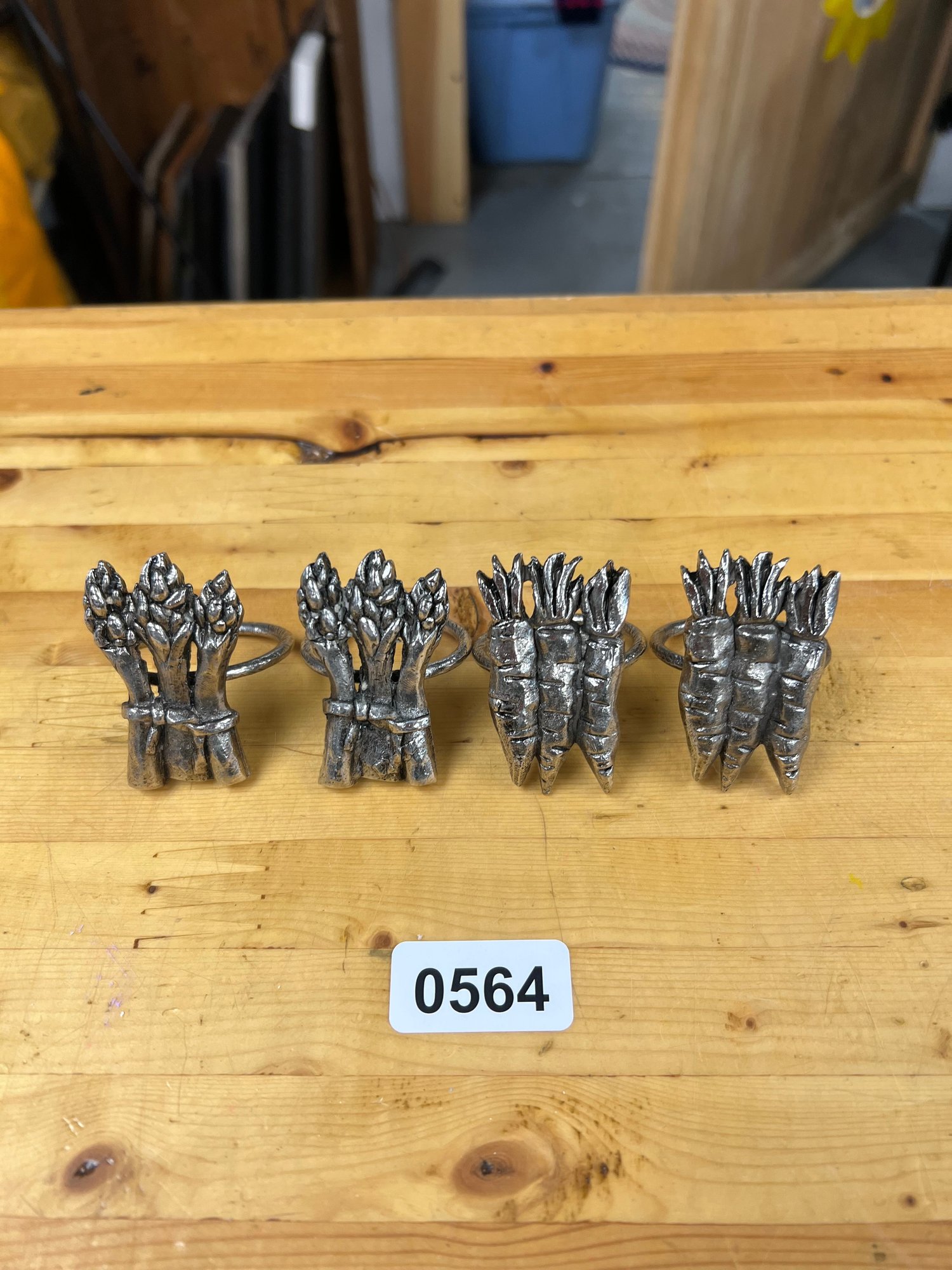 Fun and funky metal napkin rings shaped like veggies — perfect for garden-themed tables.