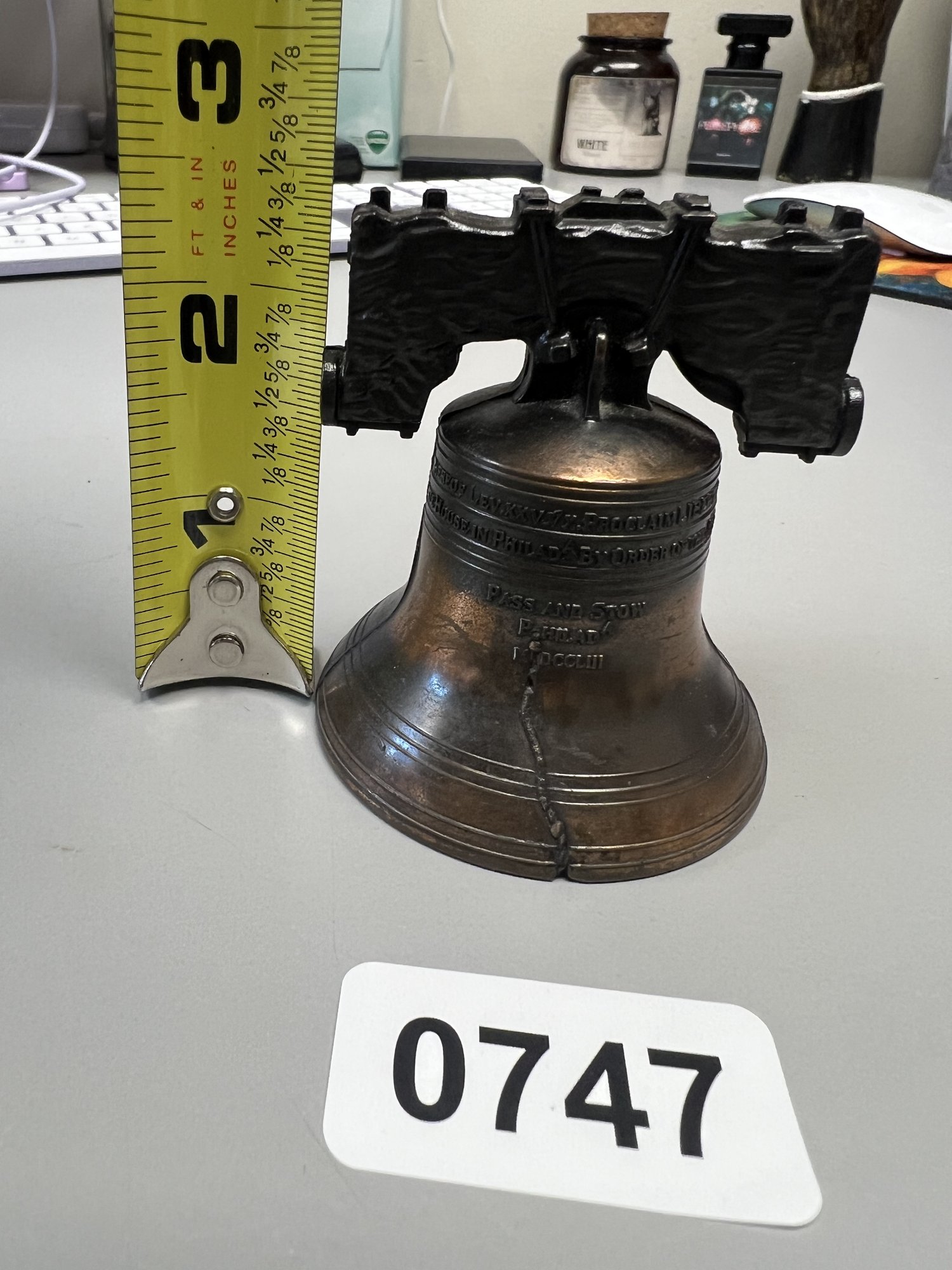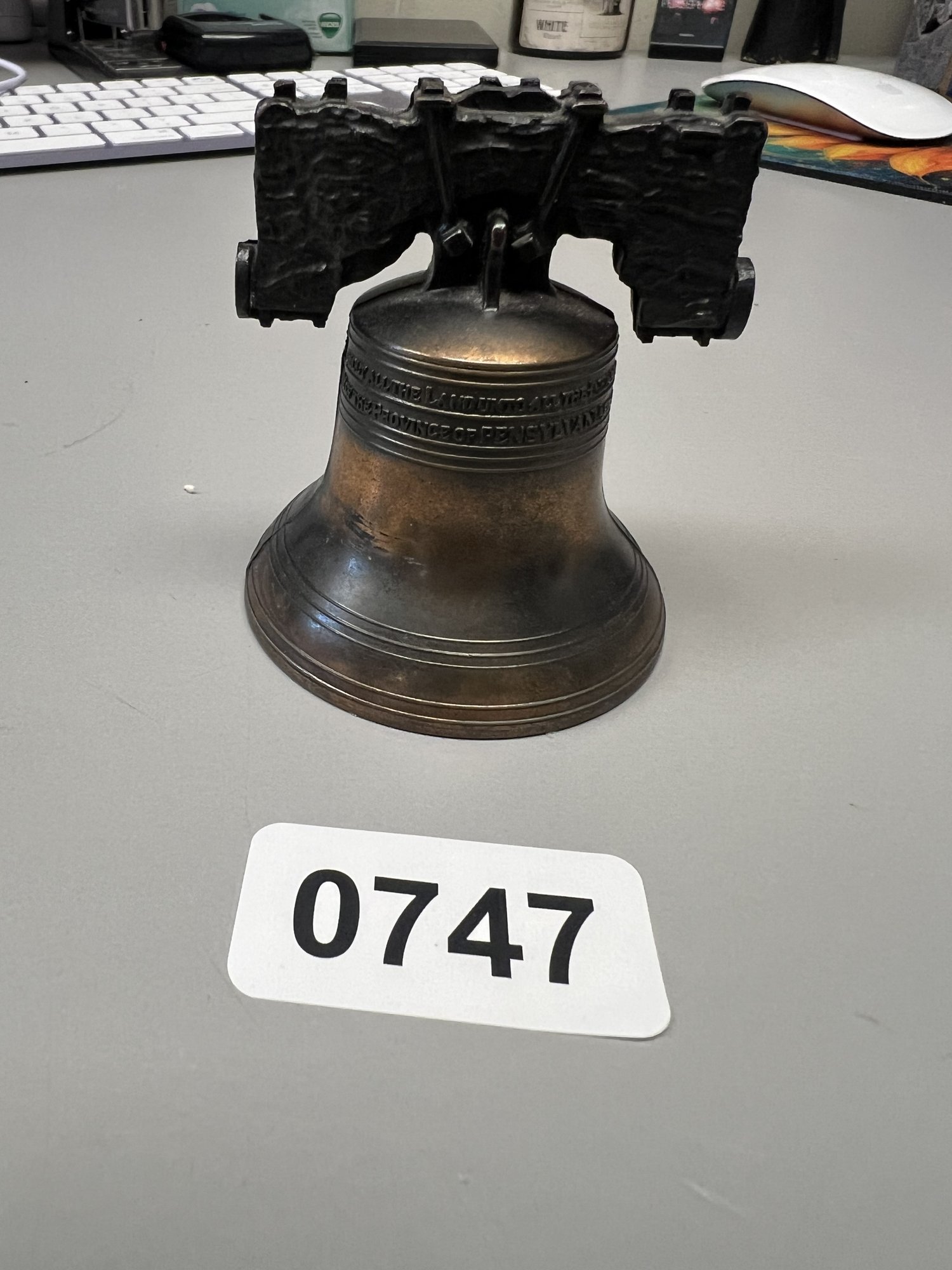 Small metal bell with vintage charm — perfect for shelf décor or crafts.
