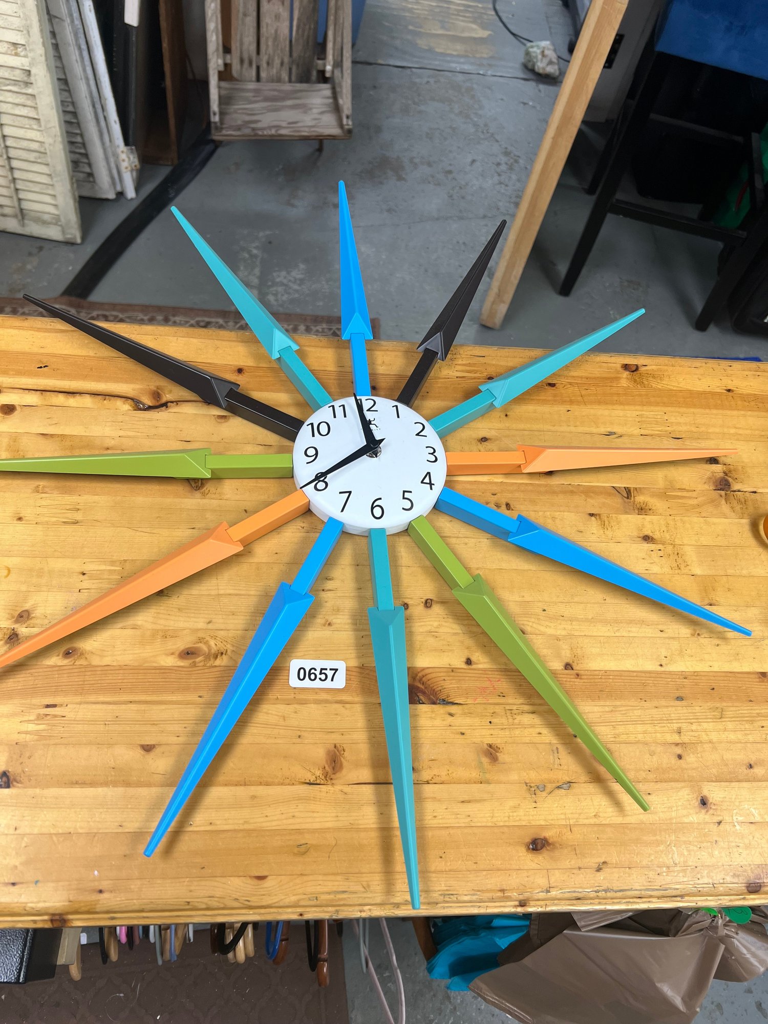 Bright modern starburst wall clock — retro-inspired style, brand new and working.