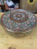 There is some damage to the tin as this has been used. There are dings throughout and stamps on the bottom as shown in photos. Please see photos for conditions.