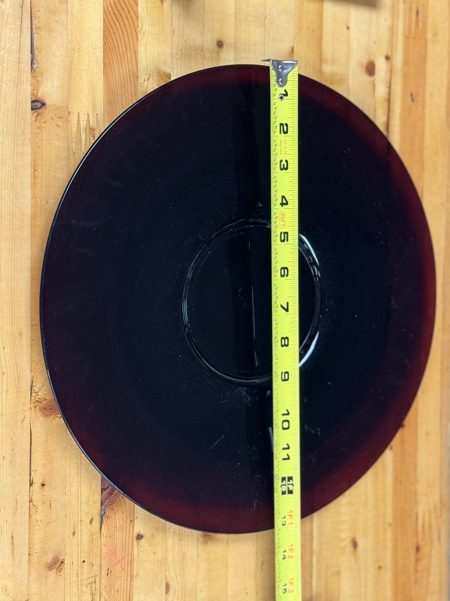 Bright red art glass plate — striking color and perfect for décor or serving.