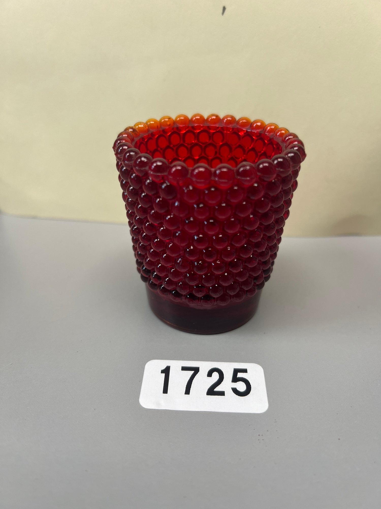 - **Color:** The candle holder boasts a rich, deep red hue with a glossy finish, characteristic of cadmium glass. This vibrant color enhances the ambiance when lit, creating a cozy atmosphere.
