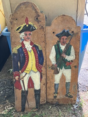 Up for auction is a unique set of two revolutionary art pieces featuring soldiers, beautifully painted on wood. These artistic representations capture the spirit of their time and would make a striking addition to any art collection or home decor. Both pieces are in good condition; please check the photos for details. Don’t miss the opportunity to own this distinctive set!