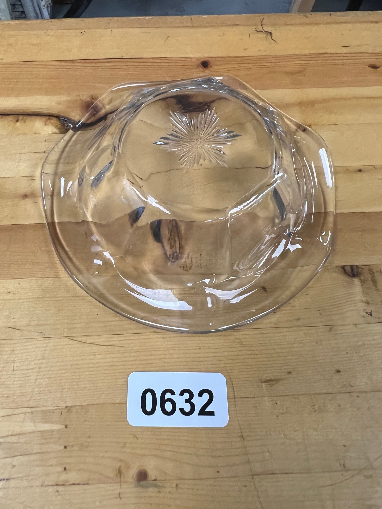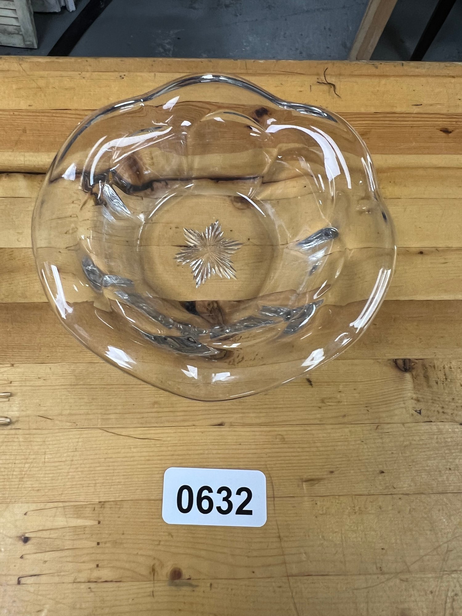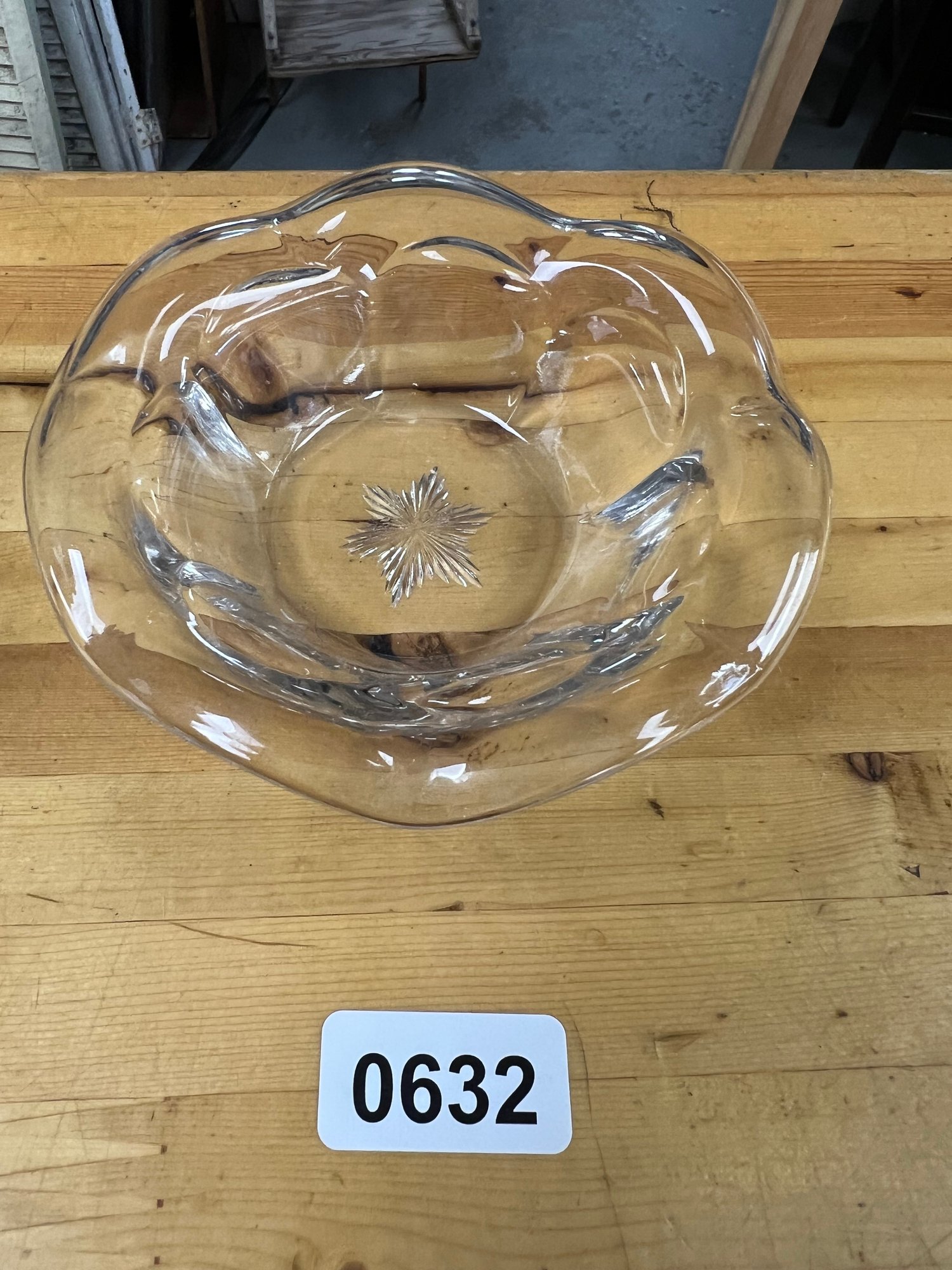 Lovely ruffled-edge glass bowl — elegant centerpiece or display piece.