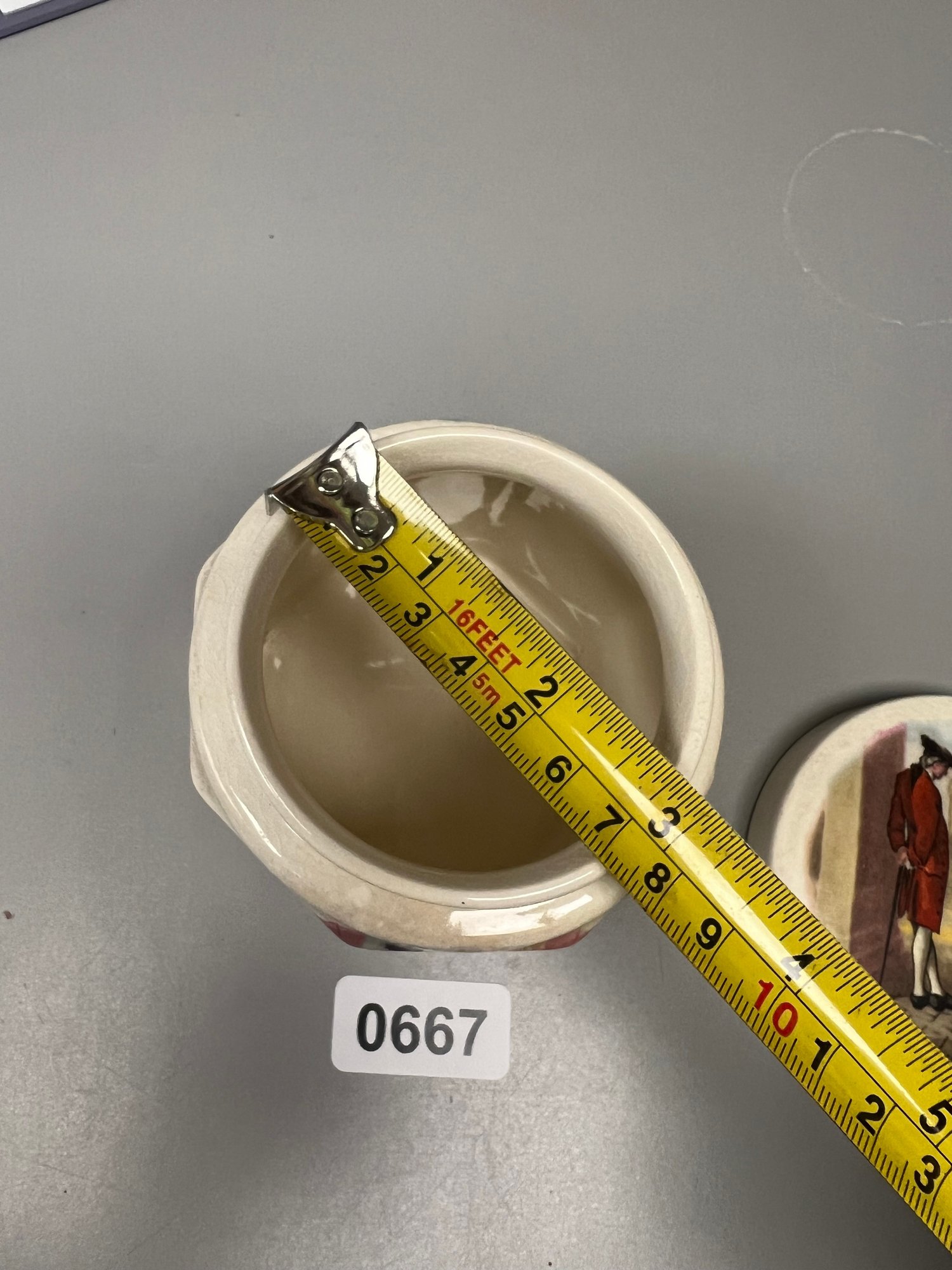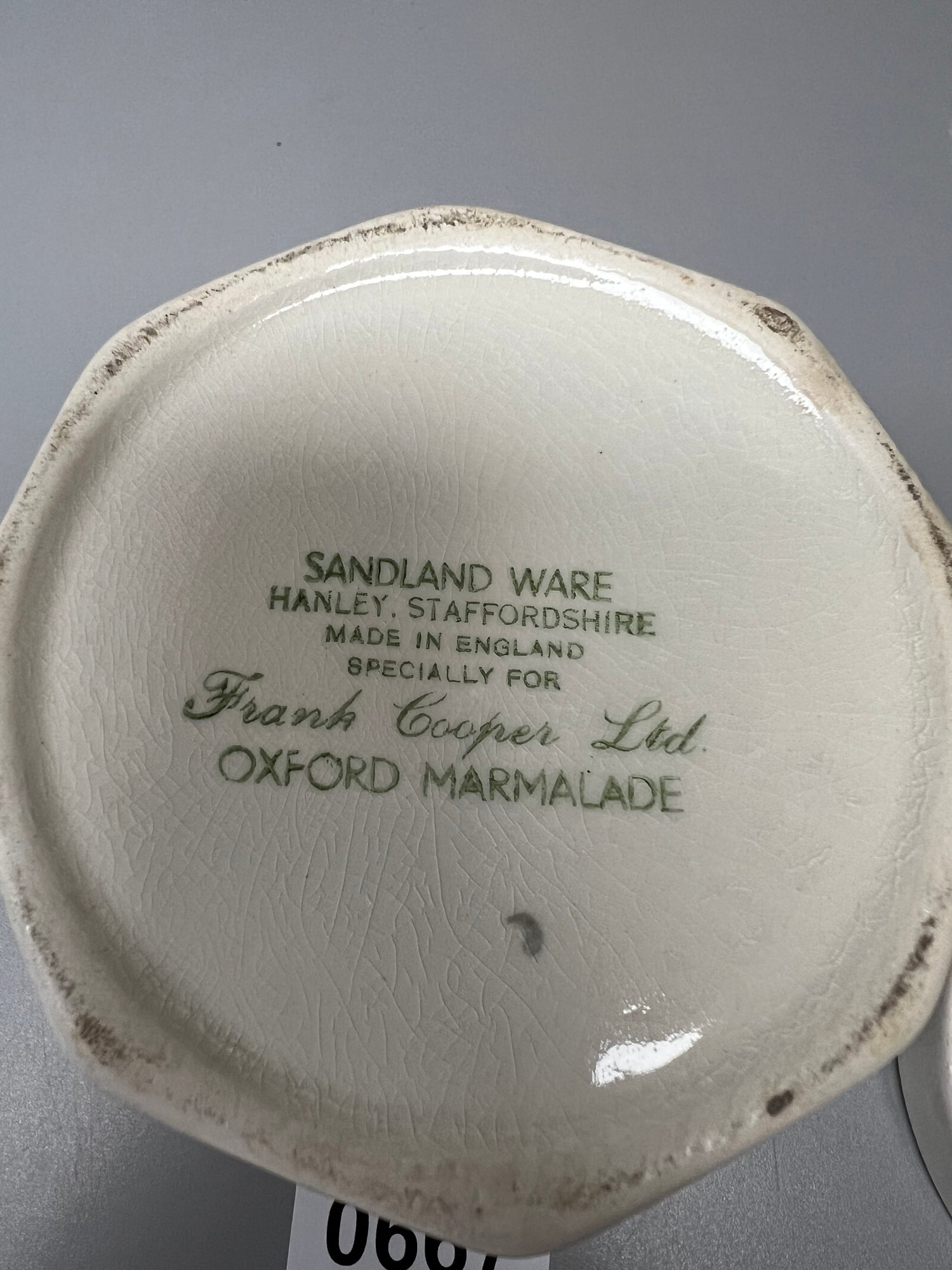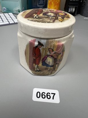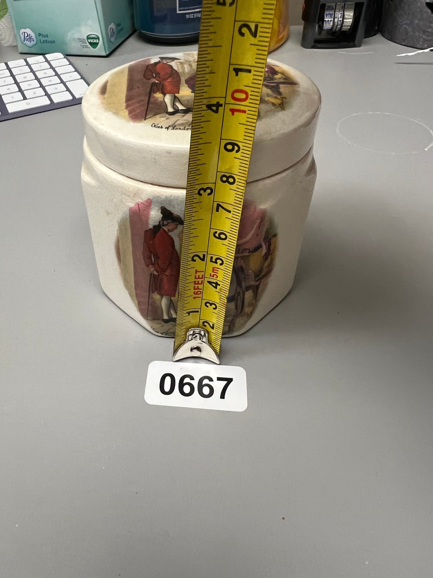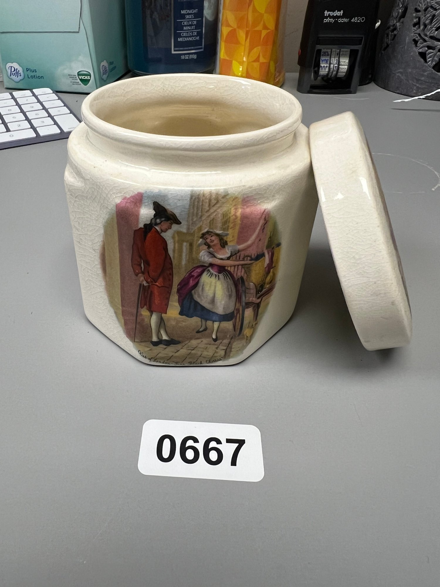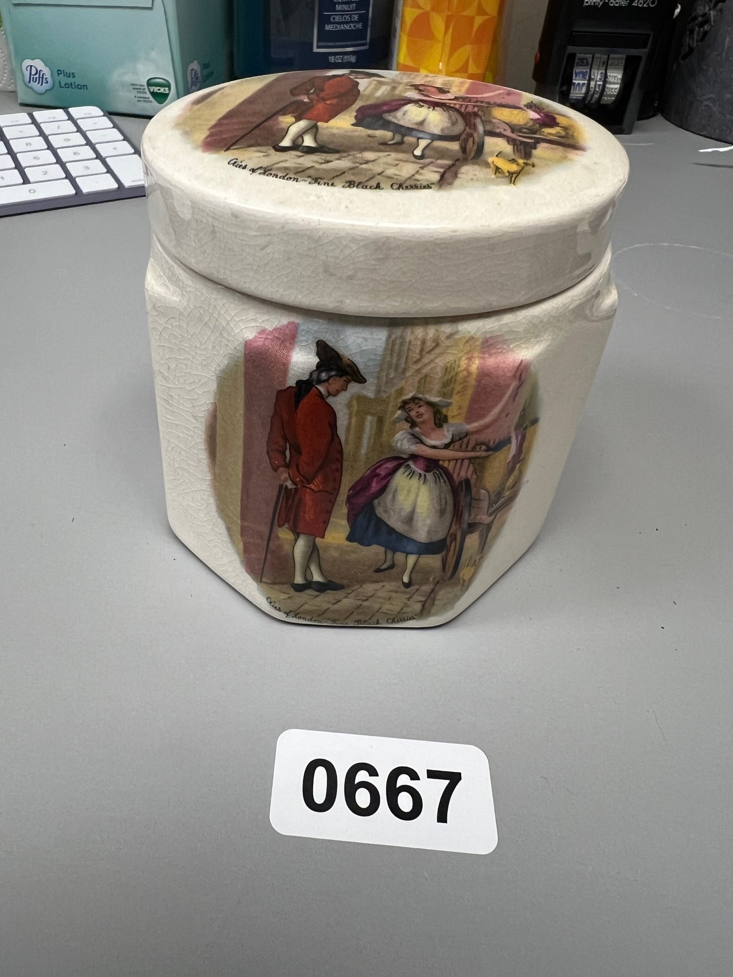 Traditional Sandland Ware jar — great English pottery collectible with lid.