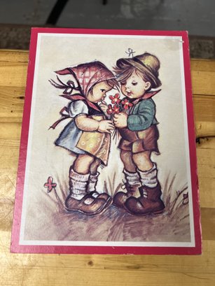 Pair of sweet Hummel-inspired artwork pieces — charming for vintage décor.